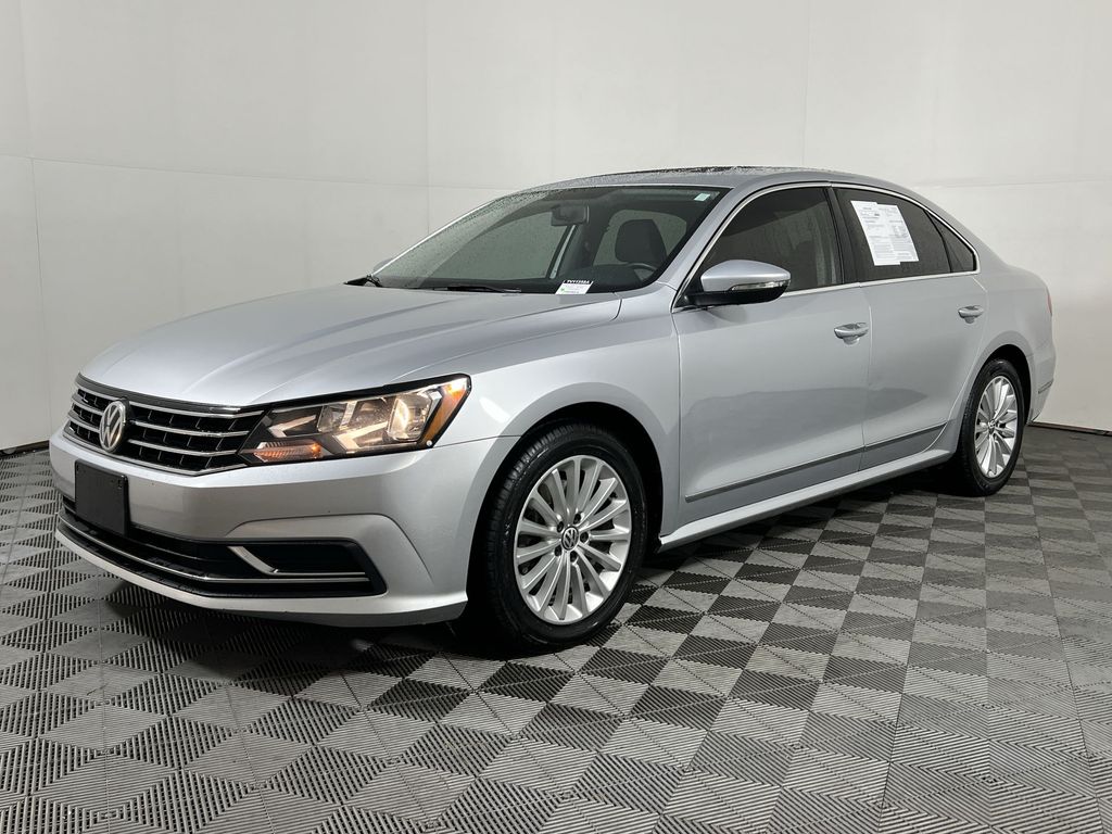 This 2017 Volkswagen Passat 1.8T SE is a well-equipped and stylish sedan that offers exceptional value and a rewarding driving experience. With its sleek silver exterior, this Passat combines sophisticated design with practical functionality, making it the perfect choice for the discerning driver. Beneath the hood, the Passat's 1.8L TSI engine delivers a responsive and efficient performance, paired with a smooth-shifting 6-speed automatic transmission with Tiptronic. With an impressive EPA-estimated 23 city/34 highway mpg, this Passat provides the perfect blend of power and efficiency to meet your daily driving needs. The interior of this Passat is equally impressive, with V-Tex leatherette seating surfaces, a leather-wrapped steering wheel, and a panoramic power moonroof that floods the cabin with natural light. The Composition Media infotainment system keeps you connected and entertained, while the rearview camera and advanced safety features, including a comprehensive airbag system and electronic stability control, provide added peace of mind on the road. Spacious and versatile, the Passat offers ample room for passengers and cargo, making it an excellent choice for families or those with active lifestyles. The split-folding rear seat allows you to easily accommodate larger items, while the generous trunk space ensures you can bring along all your essentials. This 2017 Volkswagen Passat 1.8T SE is a compelling option for those seeking a well-equipped, stylish, and practical sedan. With its impressive features, efficient performance, and exceptional value, it's a vehicle that is sure to impress. We invite you to schedule a test drive and experience the Passat for yourself.