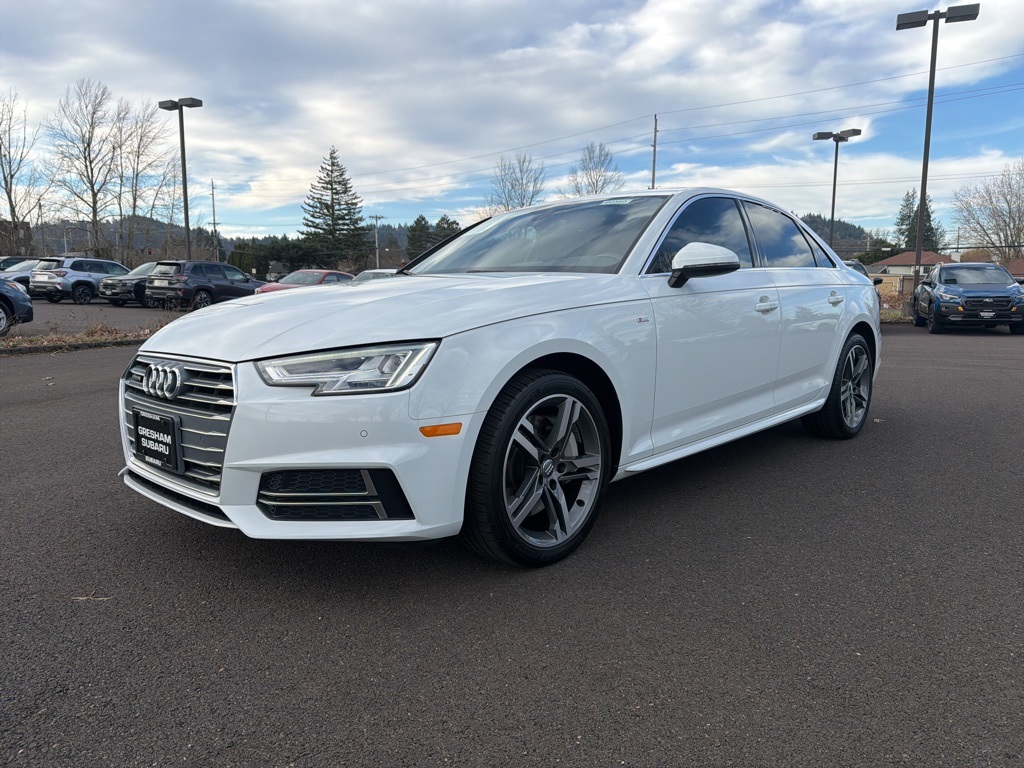 Recent Arrival! 7-Speed Automatic S tronic, quattro, Nougat Brown/Black w/Leather Seating Surfaces, 10 Speakers, 4-Wheel Disc Brakes, ABS brakes, Air Conditioning, Alloy wheels, Aluminum High-Gloss Window Surrounds, AM/FM radio: SiriusXM, Anti-whiplash front head restraints, Audi Beam-Rings, Audi First Aid Kit, Audi Guard All-Weather Floor Mats, Audi Pre Sense Rear, Audi Side Assist, Audi smartphone interface (Apple CarPlay/Android Auto), Auto-dimming door mirrors, Auto-dimming Rear-View mirror, Automatic temperature control, Bang & Olufsen Sound System w/3D Sound, Brake assist, Bumpers: body-color, Collapsible Fabric Audi Trunk Cargo Storage Box, Compass, Delay-off headlights, Driver door bin, Driver vanity mirror, Dual front impact airbags, Dual front side impact airbags, Electronic Stability Control, Exterior Parking Camera Rear, Four wheel independent suspension, Front anti-roll bar, Front Bucket Seats, Front Center Armrest, Front dual zone A/C, Front fog lights, Front reading lights, Full LED Headlights, Garage door transmitter: HomeLink, Heated 3-Step Front Bucket Seats, Heated door mirrors, Heated front seats, High intensity discharge headlights: Xenon plus, Illuminated entry, Knee airbag, Leather Seating Surfaces, Leather Shift Knob, Leather steering wheel, Low tire pressure warning, Memory seat, Natural Gray Oak Inlays, Navigation System, Occupant sensing airbag, Outside temperature display, Overhead airbag, Overhead console, Panic alarm, Parking System Plus, Passenger door bin, Passenger vanity mirror, Power door mirrors, Power driver seat, Power Folding Exterior Mirrors, Power moonroof, Power passenger seat, Power steering, Power windows, Premium Plus Package, Radio data system, Radio: Audi MMI Navigation Plus w/MMI Touch, Rain sensing wipers, Rear air conditioning, Rear anti-roll bar, Rear fog lights, Rear reading lights, Rear seat center armrest, Rear window defroster, Remote CD player, Remote keyless entry, Security system, Speed control, Speed-sensing steering, Speed-Sensitive Wipers, Split folding rear seat, Steering wheel mounted audio controls, Tachometer, Telescoping steering wheel, Tilt steering wheel, Traction control, Trip computer, Turn signal indicator mirrors, USB Cables (DISC), Variably intermittent wipers, Wheels: 7.5" x 17" 5-Spoke-Y Design, Wheels: 8" x 18" 5-Spoke Dynamic Design. 2018 Audi A4 2.0T quattro 4D Sedan 2.0L I4 TFSI DOHC 7-Speed Automatic S tronic quattro Glacier White Clean CARFAX.