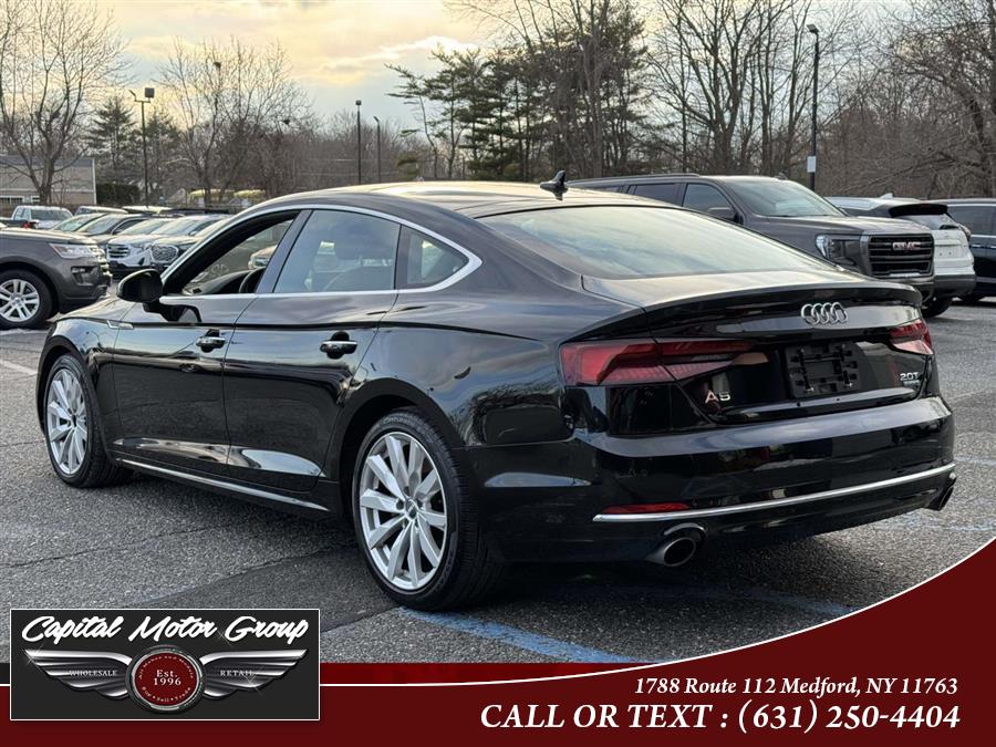 This 2018 Audi A5 Sportback is available at Capital Motor Group Inc in Medford, NY. Please confirm the accuracy of the specifications provided above with the dealer's representative. Neither the dealer nor the provider of the information is responsible for misprints or other errors regarding this data. Mileage information is based on an EPA rating at the time the vehicle was manufactured. Actual mileage will vary with options, driving conditions, driving habits, and vehicle's condition.