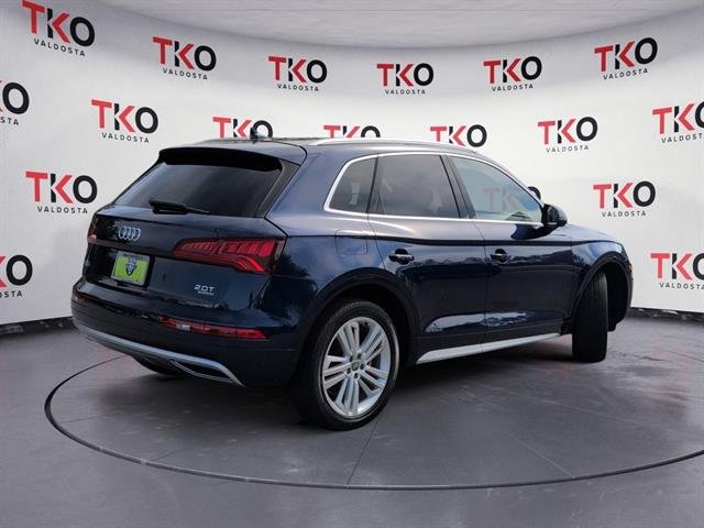 Experience luxury, performance, and advanced technology in this striking blue 2018 Audi Q5 AWD 2.0T quattro Prestige SUV. Enjoy the confidence of all-wheel drive powered by a 2.0L turbocharged engine and smooth 7-speed double clutch transmission. The Prestige trim pampers you with Bang & Olufsen premium sound, a panoramic sunroof, plush leather upholstery, and heated front seats. Stay connected with Apple CarPlay/Android Auto, Audi MMI Connect infotainment, Wi-Fi hotspot, and a 12.3-inch customizable instrument cluster. Safety is paramount with front and rear parking sensors, surround view camera system, blind spot monitoring, and front automatic emergency braking. Features like a sensor-activated power liftgate, aluminum alloy wheels, LED headlights, and memory settings add convenience and style. Whether commuting or road-tripping, this Q5 blends refined comfort, advanced driver aids, and sporty handling-all in a package that stands out. As part of the TKO Valdosta family, you'll benefit from courtesy lifetime oil changes and car washes, ensuring your vehicle stays in top condition for as long as you own it!