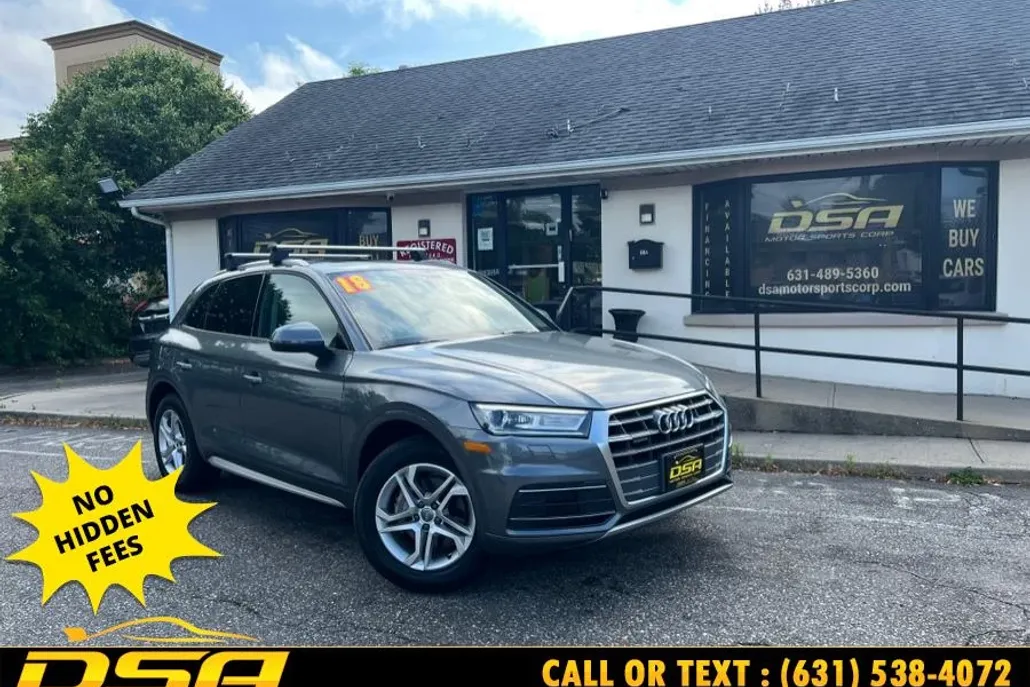 This 2018 Audi Q5 is available at DSA Motor Sports Corp in Commack, New York. It features a clean Carfax, panoramic sunroof, heated seats, and leather interior. The vehicle has 103,485 miles and is priced at $14,995.