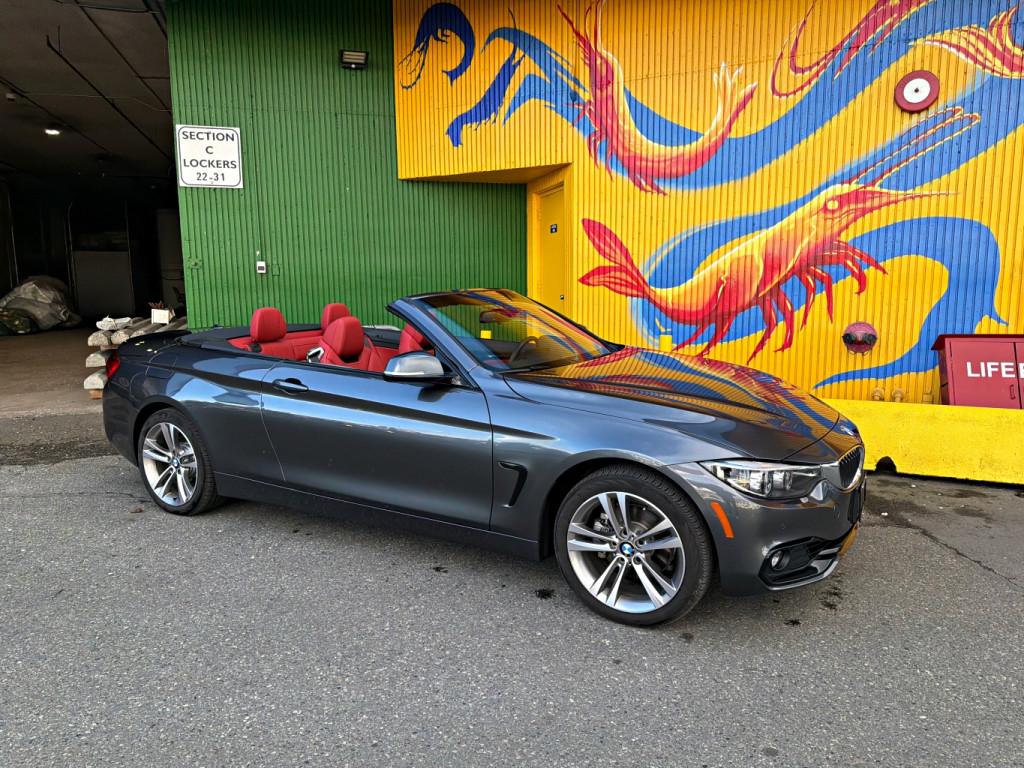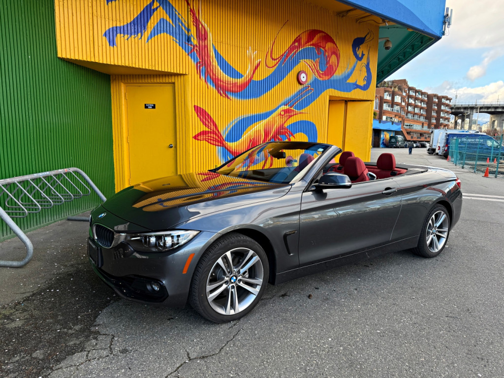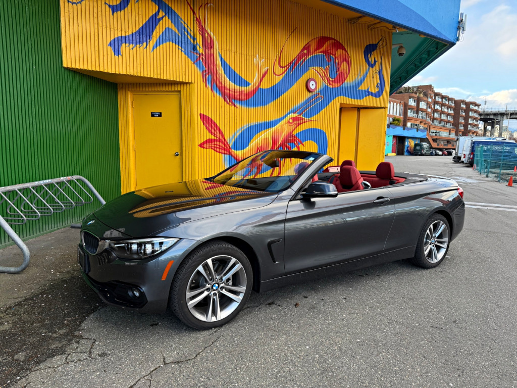 This local, accident free BMW 430i xDrive Cabriolet comes well equipped with a mineral grey metallic exterior, red Dakota leather interior with Brushed Aluminum Trim w/High-Gloss Black Highlight, heated 16-way power adjustable front seats, dual zone climate control, air conditioning, power reclining hard-top, Premium Package Enhanced -inc: Full Digital Instrument Display, Air Collar, Auto Dimming Exterior Mirrors, Comfort Access, Lumbar Support, Alarm System, Head-Up Display, Heated Steering Wheel, SiriusXM Satellite Radio Tuner, harman/kardon Sound System, Universal Remote Control, Front & Rear Park Distance Control, BMW ConnectedDrive Services Professional, 18" alloy wheels, and has a 2.0L inline 4 cylinder engine producing 248hp / 258lb-ft paired to an 8 speed automatic transmission with steering wheel mounted paddle shifters. Viewings are by appointment only. Please call or send an inquiry to set up a time and ensure vehicle is available for viewing. We have the Carfax vehicle history report. For further questions or for an appointment to come see the vehicle, please contact Granville Island Auto Centre at 604-732-9722. We welcome all trades and have financing options available on select models. Please note there will be a $495 documentation fee as well as any applicable taxes applied to the selling price of the vehicle.