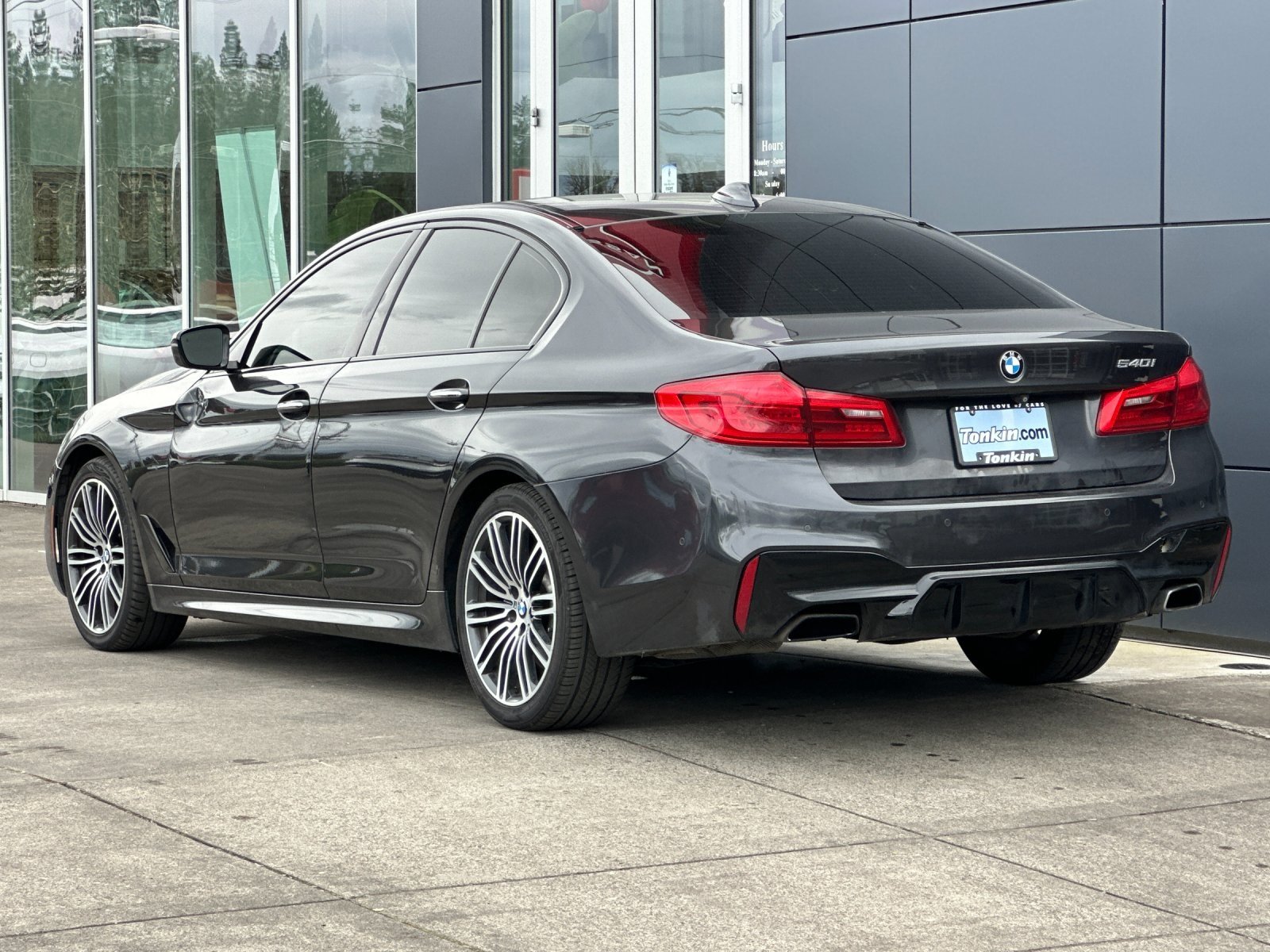 2018 BMW 5 Series 540i Dark Graphite 3.0L I6 Turbocharged DOHC 24V LEV3-ULEV70 335hp 21/30 City/Highway MPG Cognac Leather, 12 Speakers, 4-Wheel Disc Brakes, ABS brakes, Active Blind Spot Detection, Active Driving Assistant, Active Driving Assistant Plus, Aerodynamic Kit, Air Conditioning, Alloy wheels, AM/FM radio, Apple CarPlay Compatibility, Auto tilt-away steering wheel, Auto-dimming door mirrors, Auto-dimming Rear-View mirror, Automatic temperature control, Brake assist, Bumpers: body-color, Burl Walnut Wood Trim, CD player, Comfort Access Keyless Entry, Dakota Leather Upholstery, Delay-off headlights, Driver door bin, Driver vanity mirror, Driving Assistance Package, Driving Assistance Plus Package, Dual front impact airbags, Dual front side impact airbags, Emergency communication system: BMW Assist eCall, Exterior Parking Camera Rear, Four wheel independent suspension, Front anti-roll bar, Front Bucket Seats, Front Center Armrest, Front dual zone A/C, Front fog lights, Front reading lights, Fully automatic headlights, Garage door transmitter, Genuine wood console insert, Genuine wood dashboard insert, Genuine wood door panel insert, Gesture Control, harman/kardon Surround Sound System, Head-Up Display, Heated door mirrors, Heated Front Seats, HiFi Sound System, Illuminated entry, In-Dash CD Player, Increased Top Speed Limiter, Lane Departure Warning System, Leather Shift Knob, Leather steering wheel, Low tire pressure warning, Lumbar Support, M Sport Package, M Sport Pkg, M Sport Suspension, M Steering Wheel, Memory seat, Multi-Contour Seats, Navigation System, Occupant sensing airbag, Outside temperature display, Overhead airbag, Panic alarm, Park Distance Control, Passenger door bin, Passenger vanity mirror, Power door mirrors, Power driver seat, Power Front Seats, Power moonroof, Power passenger seat, Power steering, Power Tailgate, Power windows, Radio data system, Radio: AM/FM Audio System, Rain sensing wipers, Rear anti-roll bar, Rear reading lights, Rear seat center armrest, Rear window defrostererestrauterestrauendestrauendestrauendrauendestrauendestraendestrauendistrauendes. Our Best Price Up Front. No Games or Gimmicks. Our advertised price is for a retail type purchase and may not be available for Fleet or Commercial use type purchase; please call us to confirm.