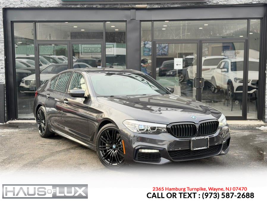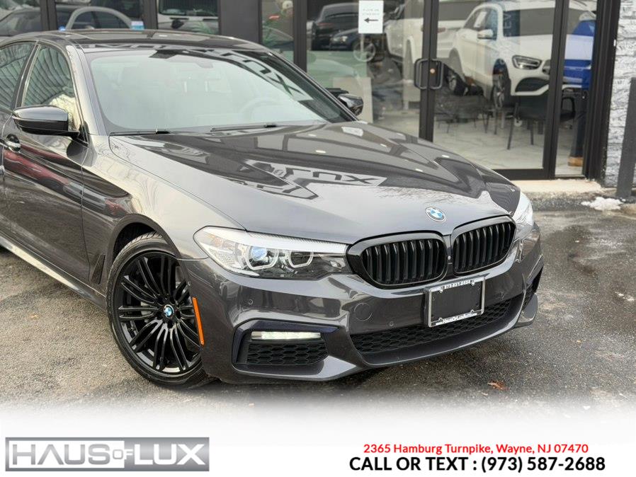 This 2018 BMW 5 Series 540i xDrive Sedan (M-Package) is available for sale in Wayne, New Jersey. It features a 3.0L 6 Cylinder Turbo engine, all wheel drive, and a gray exterior with black interior. The vehicle is in stock and priced at $23,995.