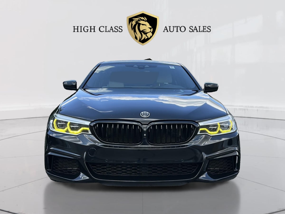 A breathtaking performer, our exclusive Accident Free 2018 BMW M Series M550i xDrive Sedan delivers an unforgettable driving experience in Azurite Black Metallic! Powered by a Twin-TurboCharged 4.4 Liter M Performance V8 serving up 456hp paired with a paddle-shifted 8 Speed Steptronic Sport Automatic transmission so you can fly to 60mph in fewer than 4 seconds. This All Wheel Drive sedan also shows stands out with brilliant handling thanks to adaptive M suspension and M Sport brakes, plus you will score nearly 25mpg on the highway. BMW's iconic kidney grille leads the way for a stunning design that's complemented by adaptive LED headlights, a power sunroof, an aero-style body kit, and bold alloy wheels. Our M550i cabin keeps you comfortable whether you're on the track, on your way to work, or just out having fun. Highlights here include heated/cooled leather multi-contour power front seats, a sporty M-style steering wheel, automatic temperature control, and sophisticated technology. Take charge of every ride with a 10.25-inch iDrive display, full-color navigation, Bluetooth, and a high-fidelity Harman Kardon sound system. Travel with an extra measure of confidence knowing BMW supplies smart safety features such as a rearview camera, ABS, stability/traction control, airbags, advanced airbags, and more. Our M Series is eager for action so come set it free! Save this Page and Call for Availability. We Know You Will Enjoy Your Test Drive Towards Ownership!
