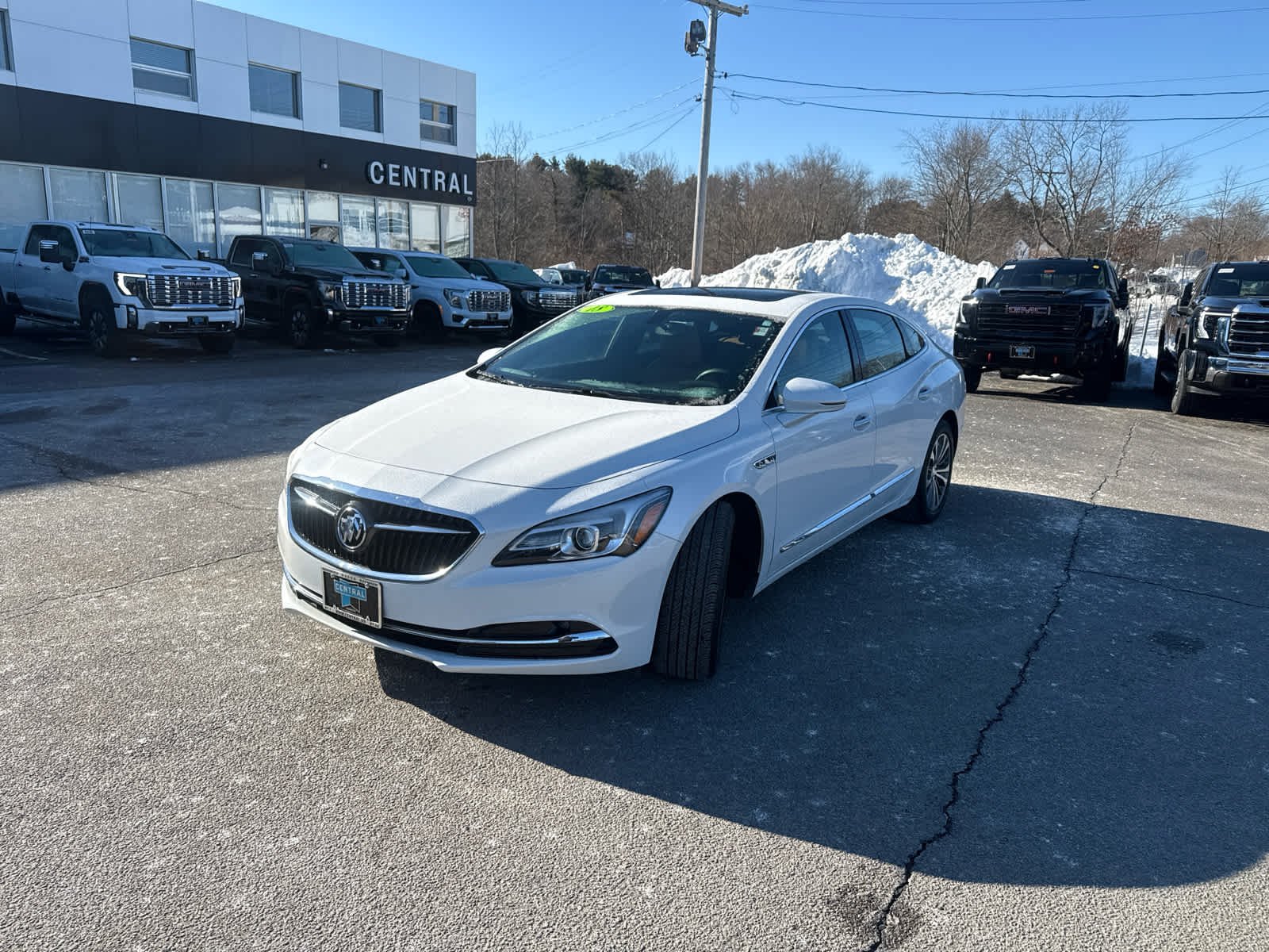 Excellent Condition. Fuel efficient 30 MPG Hwy/21 MPG City! Essence trim. Heated leather seats, moonroof, navigation system, onboard communications system, satellite radio, back-up camera, rear air, aluminum wheels, sights and sounds package. Non-smoker vehicle Buick Essence with White Frost Tricoat exterior and Brandy interior features a V6 Cylinder Engine with 310 HP at 6800 RPM. Regardless of the engine you get, the 2018 Buick LaCrosse delivers an impeccably quiet and comfortable driving experience. This LaCrosse is priced $1,300 below Kelley Blue Book. Every Central pre-owned vehicle undergoes a complete multi-point inspection by our factory-trained technicians. The vehicle is then professionally detailed inside and out. The Central Auto Team is a family-owned business that has proudly served the community for over 60 years. We are committed to customer satisfaction, invest in our community, and stand behind every vehicle we sell.