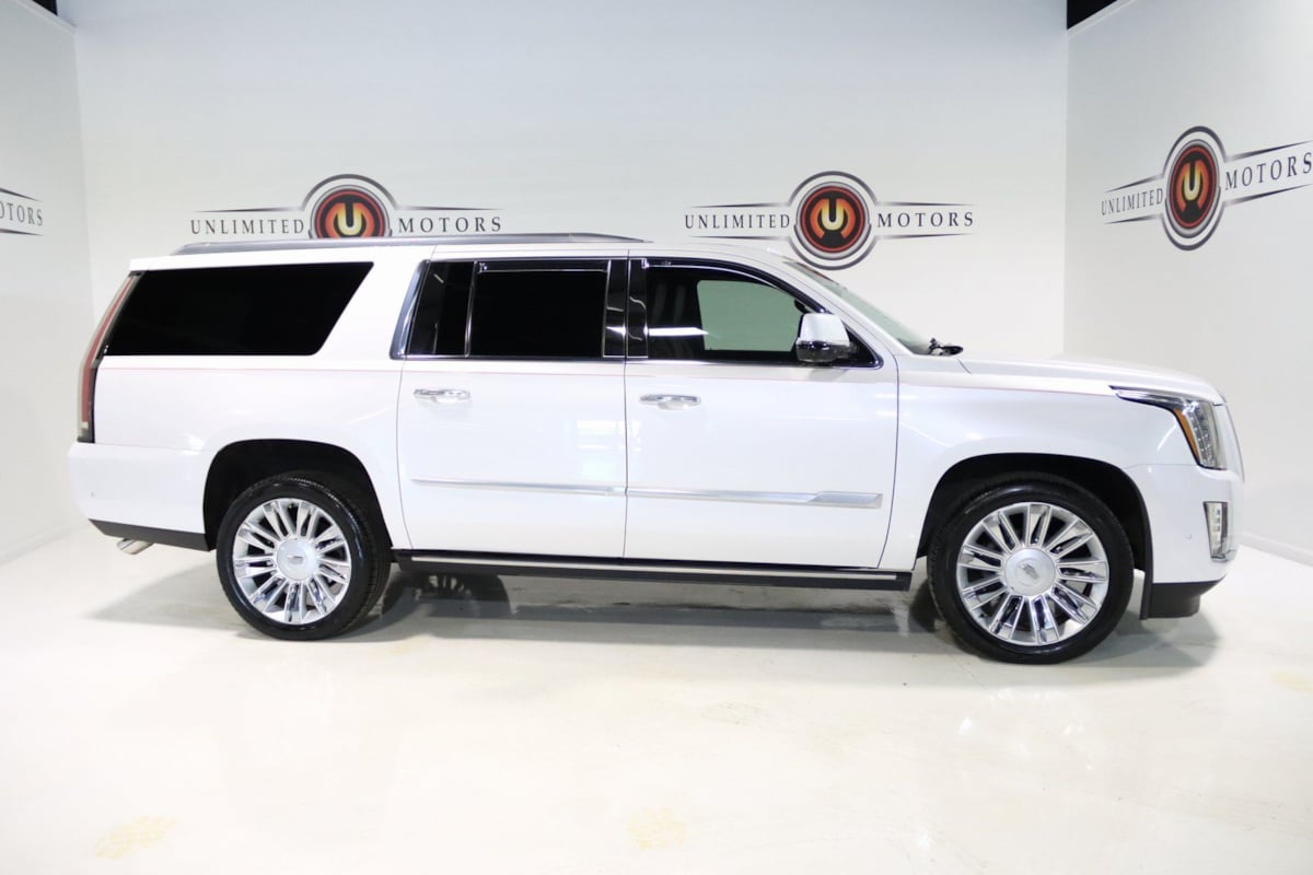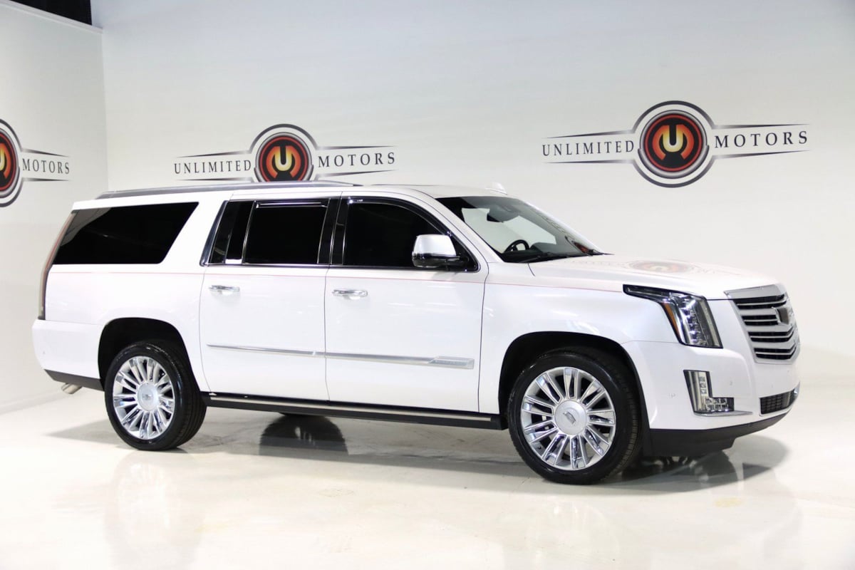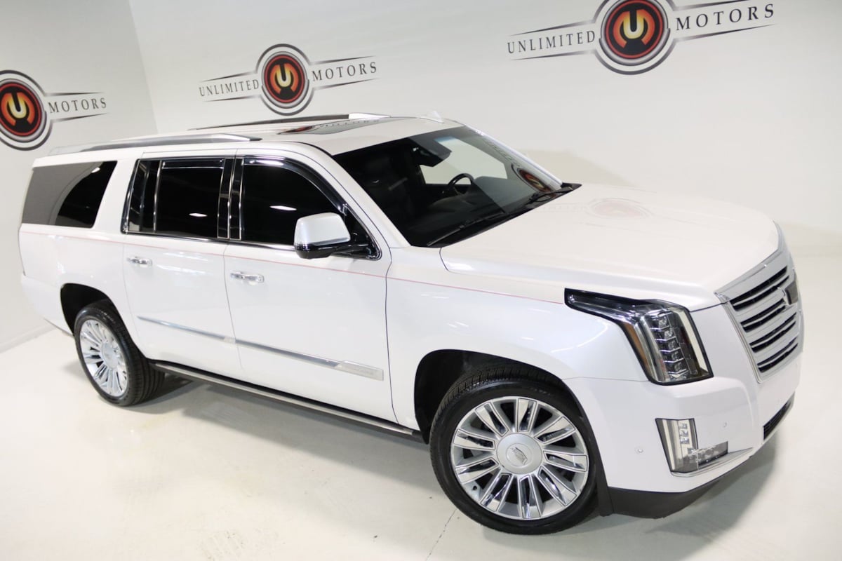 Odometer is 9506 miles below market average! Priced below KBB Fair Purchase Price! 2018 Crystal White Tricoat Cadillac 4D Sport Utility Escalade ESV Platinum Edition 4WD 10-Speed Automatic with Overdrive 6.2L Variable Valve Timing V8 SIDI. Visit our website www.iumotors.com to view 100s of newer vehicles, more pictures and info, or to apply for financing. Rates are incredibly low for approved credit.