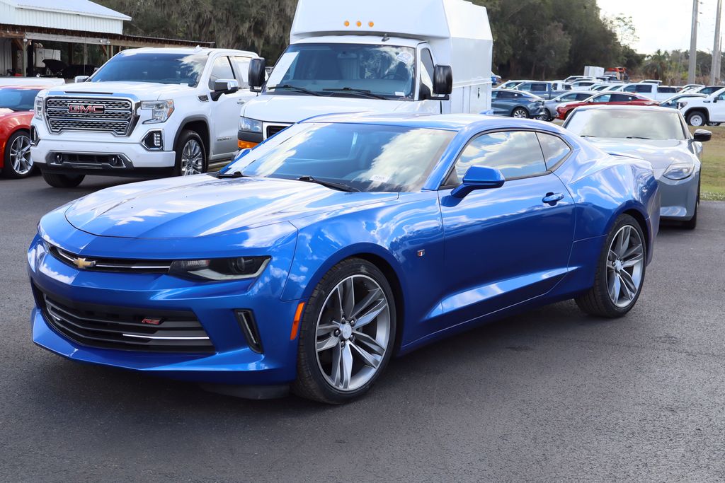 This 2018 Chevrolet Camaro 1LT is a head-turner with its stunning Hyper Blue Metallic exterior and impressive performance capabilities. Powered by a 3.6L V6 engine that delivers 335 horsepower and 284 lb-ft of torque, this Camaro offers an exhilarating driving experience. The 8-speed automatic transmission provides smooth, responsive shifting, while the rear-wheel-drive layout ensures exceptional handling and control. The Camaro's sleek and sporty design is further enhanced by the RS Package, which includes 20-inch 5-split spoke premium Gray-painted, machined-face aluminum wheels, high-intensity discharge headlamps, LED taillamps, and a decklid-mounted lip spoiler. Inside, the cabin is equipped with a suite of advanced technology features, including Chevrolet MyLink infotainment system with Apple CarPlay and Android Auto integration, a backup camera, and push-button start. Comfort and convenience are also prioritized, with power-adjustable driver and passenger seats, dual-zone automatic climate control, and a premium audio system with 6 speakers. The Camaro's handling is further refined by its four-wheel independent suspension and speed-sensing steering, ensuring a smooth and responsive ride. Safety is also a top priority, with features like dual front and side impact airbags, electronic stability control, and a tire pressure monitoring system. The Camaro's OnStar emergency communication system provides added peace of mind, offering features like automatic crash response and emergency services.