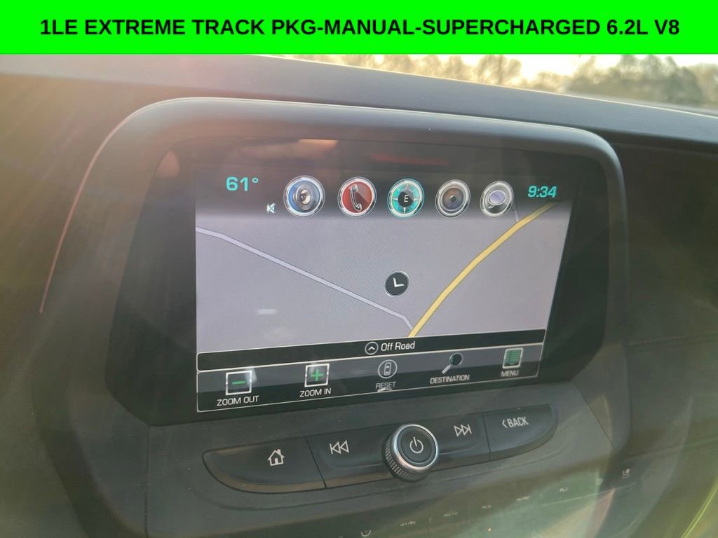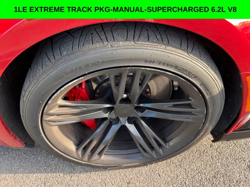 - Jet Black with Red Accents with Leather-Trimmed Seat Trim w/Sueded Inserts, Exposed Carbon Fiber Weave Hood Insert, Exposed Carbon Fiber Rear Spoiler, Fixed Rear Seat, Low Gloss Black Outside Rearview Mirrors, Navigation System, Performance Suspension w/DSSV Dampers, Preferred Equipment Group ZL1, Red Calipers, Satin Black Hood Wrap, Wheels: 19 x 11 Fr & 19 x 12 Rr Low Gloss Blk.