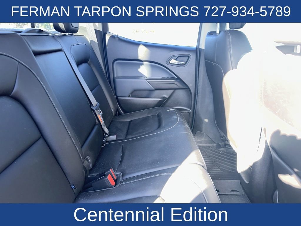 CARFAX One-Owner. Clean CARFAX. Colorado Z71, 4D Crew Cab, V6, 8-Speed Automatic, 4WD, Centennial Blue Metallic, Black Leather, 100-Year Door Badges, All-Weather Floor Liner (LPO), Alloy wheels, Body-Color Accessory Grille Surround, Bose Premium 7-Speaker Audio System Feature, Centennial Edition, Chrome Beltline Moldings, Chrome Door Handles, Chrome Recovery Hooks, Driver 4-Way Power Seat Adjuster, Exterior Parking Camera Rear, Front Bucket Seats, Heavy-Duty Trailering Package, Heritage Bowties, Outside Heated Power-Adjustable Chrome Mirrors, Power Driver Lumbar Control Seat Adjuster, Power driver seat, Power windows, Preferred Equipment Group 4Z7, Premium audio system: Chevrolet MyLink, Remote keyless entry, Spray-On Bed Liner w/Heritage Themed Bowtie, Wheels: 18 5-Spoke Polished Aluminum (LPO).