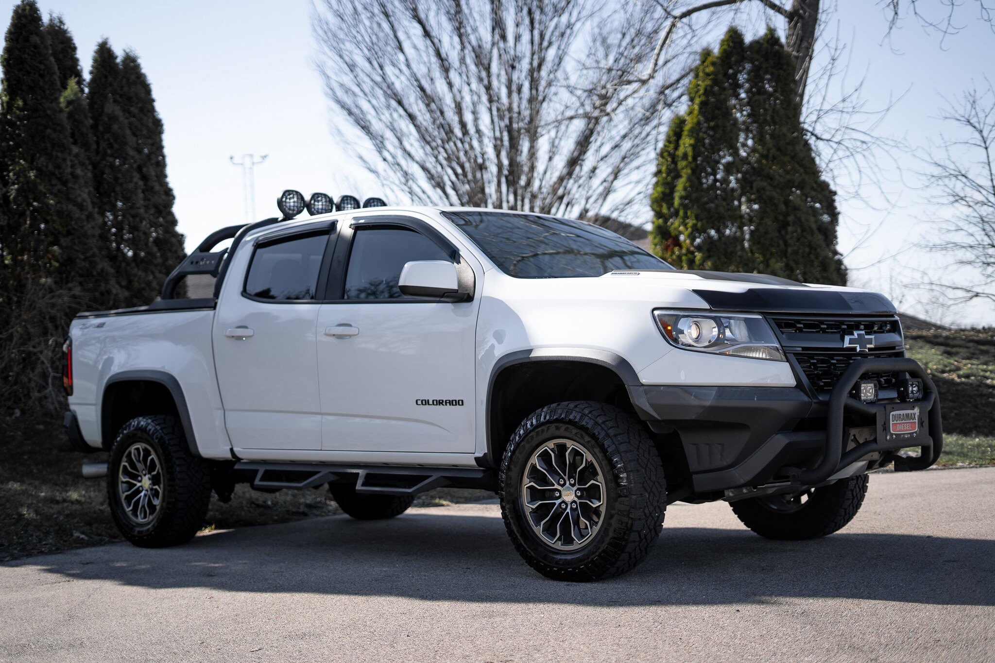 Clean CARFAX. 2018 Chevrolet Colorado Summit White 4D Crew Cab ZR2 4WD 2.8L Duramax Turbodiesel. Rear View Camera, Touch Screen, Handsfree Calling/Bluetooth, USB/AUX Ports, Diesel, Trailer Tow Package, No Accident History, Non-Smoker, Satellite Radio, Heated Leather Seats, Local Trade, 4WD, 17" x 8" Aluminum Wheels, Automatic temperature control, Black Rear Bumpers, Black Spray-On Bedliner w/Chevrolet Logo, Driver-Selectable Full-Locking Front Differential, Driver-Selectable Full-Locking Rear Differential, Dual front side impact airbags, Exterior Parking Camera Rear, Front fog lights, Heated front seats, Heavy-Duty Trailering Package, Integrated Trailer Brake Controller, Leather-Appointed Seat Trim, Low tire pressure warning, Off-Road Appearance Package, Power passenger seat, Preferred Equipment Group 4ZR, Radio: AM/FM Stereo w/8" Diagonal Color Touch Nav., Security system, SiriusXM Satellite Radio, Speed control, Steering wheel mounted audio controls, Telescoping steering wheel, Tilt steering wheel.