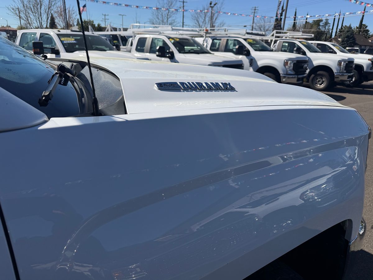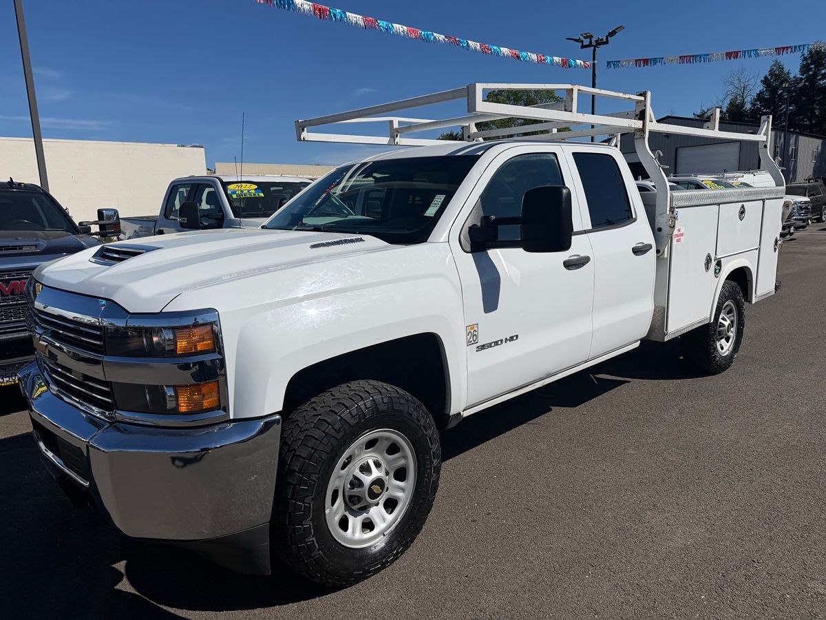 The 2018 Chevrolet Silverado 3500HD 2WD Double Cab 158.1" Work Truck is a robust and reliable vehicle, perfect for demanding tasks and rigorous environments. With its Summit White exterior, it exudes a refined yet commanding presence, while the Dark Ash interior with Jet Black accents provides a comfortable and pragmatic cabin experience. Powered by the formidable Duramax 6.6L Turbo-Diesel V8 engine, which is B20-diesel compatible, this truck offers the perfect blend of power and efficiency for any work challenge. Safety is a core aspect of the Silverado 3500HD, equipped with a comprehensive airbag system. This includes single-stage frontal airbags for both the driver and front outboard passenger, seat-mounted side-impact airbags, as well as head-curtain airbags for front and rear outboard seating positions. The truck's stability and resilience are further enhanced with all-season blackwall tires, including a spare LT265/70R18E tire, ensuring you're prepared for a variety of road conditions. Additionally, for those chilly mornings, the engine block heater provides quick starts and smooth operation in cold weather. Tailored for the versatile needs of a workhorse truck, it is equipped with four upfitter switches, allowing for seamless integration of additional electrical accessories or tools. The 2WD Double Cab configuration provides ample space for crew and equipment, making it ideal for both commercial use and capability-demanding recreation. It's a truck that embodies Chevrolet's commitment to durability and performance, ensuring you have the right partner for every job. Whether towing heavy loads or navigating work sites, the Silverado proves an uncompromising choice for professionals and enthusiasts alike.