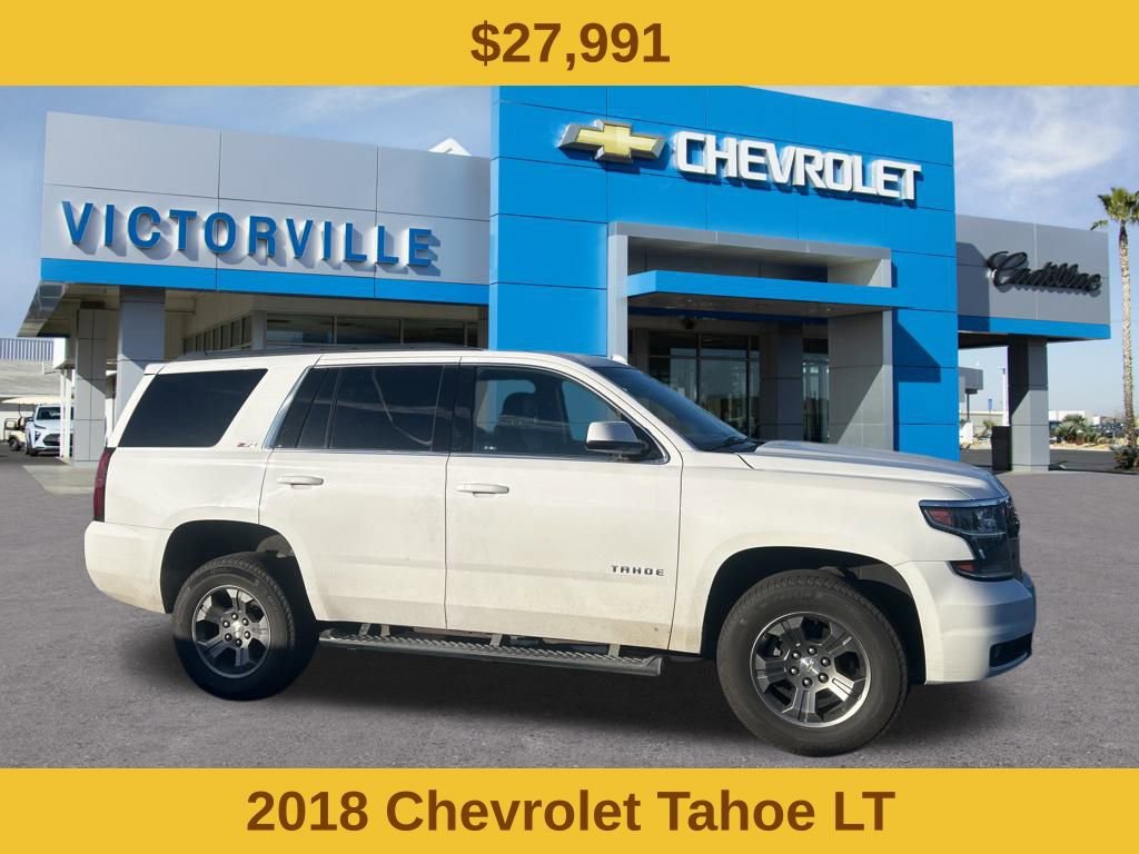 Summit White 2018 Chevrolet Tahoe LT Z71 4WD 6-Speed Automatic Electronic with Overdrive EcoTec3 5.3L V8 Tahoe LT Z71, 4D Sport Utility, EcoTec3 5.3L V8, 6-Speed Automatic Electronic with Overdrive, 4WD, Summit White, Black Leather. Why Buy from Victorville Chevrolet? We have received Chevrolet’s Dealer of the Year award multiple years in a row. Been voted locally Best of the Desert by the Daily Press. We are the highest volume selling dealership in the high desert and treat you like family. At Victorville Chevrolet, we do things differently. Our team is built around accuracy, honesty, and accountability from your first interaction to the moment you drive home. We provide: Verified availability checked by real managers Transparent, upfront pricing with no hidden fees A relaxed, zero-pressure experience Fast, consistent communication Access to inventory across Southern California if we don’t have your exact match A better Chevy experience starts right here at Victorville Chevrolet.