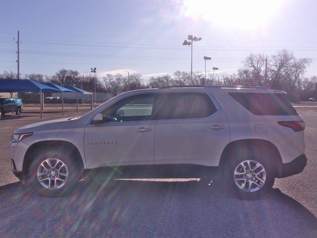 2018 Chevrolet Traverse LT Front Wheel Drive. Experience the perfect blend of space, style, and efficiency with this 2018 Chevrolet Traverse LT. Dressed in a stunning Iridescent Pearl Tricoat, this 4D Sport Utility vehicle is designed to accommodate your busy lifestyle with ease. Whether you are hauling the family to soccer practice or heading out for a weekend getaway, the Traverse provides a smooth, confident ride powered by its 3.6L V6 SIDI VVT engine and a responsive 9-speed automatic transmission. This exceptional SUV is a recent trade-in, offering you a fantastic opportunity to own a high-quality vehicle that has been thoroughly inspected and is ready for the road. As an added value, the odometer on this vehicle is over 33,000 miles below the market average, offering you a great deal on a vehicle with significantly less wear than typical models of this year. We encourage you to bring in your current vehicle as a trade-in, as we are always looking for quality, pre-owned inventory like this one to join our lot. This 2018 Chevrolet Traverse LT is more than just an SUV; it is a reliable and stylish companion for your daily life. Its combination of low mileage, advanced safety technology, and spacious interior makes it the perfect vehicle for the driver who demands both value and versatility. Proudly serving the Flint Hills for over 40 years, Jim Clark Chevrolet is committed to providing you with a superior car-buying experience. Don't let this opportunity pass you by - contact us today to schedule your test drive and experience the quality of this Traverse for yourself!