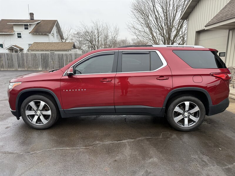 2018 Chevrolet Traverse LT Leather in Summit White with Jet Black/Dark Galvanized leather-appointed interior, powered by a 3.6L V6 (310 hp, 266 ft-lb). Factory comforts include leather seating, power-adjustable driver, heated front seats, tri-zone automatic climate control, hands-free power liftgate, remote start and keyless entry/ignition, Chevrolet MyLink touchscreen with Apple CarPlay/Android Auto, Bluetooth and USB ports, rearview camera, 18" alloy wheels, roof rails and a full safety suite (ABS, StabiliTrak, airbags, OnStar). Excellent overall condition with a clean CARFAX and economical-ish fuel numbers — 18 MPG city / 27 MPG highway — basically a three-row luxury barge that won’t totally ghost your wallet.