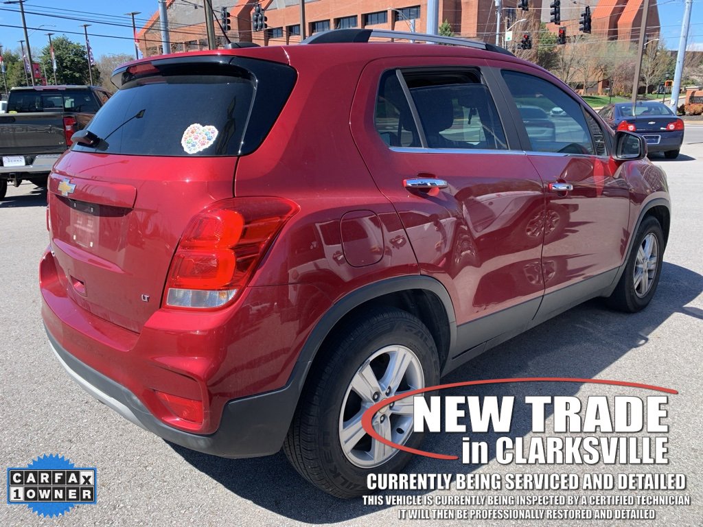CARFAX One-Owner. Clean CARFAX. Cajun Red Tintcoat 2018 Chevrolet Trax LTThe Pre-Owned 2018 Chevrolet Trax LT with ECOTEC 1.4L I4 SMPI DOHC Turbocharged VVT at Serra Clarksville. Well equipped: Interior Protection Package (LPO) (Cargo Mat and Front & Rear All Weather Floor Mats (LPO)), LT Convenience Package (2 Spare Keys Key System, 3-Spoke Leather-Wrapped Steering Wheel, 6-Way Power Driver Seat Adjuster, Body-Color Door Handles w/Chrome Accent, Deluxe Cloth/Leatherette Seat Trim, Keyless Open, and Keyless Start), Preferred Equipment Group 1LT, 16 Aluminum Wheels, 2 USB Ports w/Auxiliary Input Jack, 2-Way Manual Front Passenger Seat Adjuster, 3.53 Final Drive Axle Ratio, 4-Way Manual Driver Seat Adjuster, 6 Speakers, 6-Speaker Audio System Feature, ABS brakes, Air Conditioning, Alloy wheels, AM/FM radio: SiriusXM, Apple CarPlay/Android Auto, Brake assist, Bumpers: body-color, Compass, Delay-off headlights, Deluxe Cloth Seat Trim, Driver door bin, Driver vanity mirror, Driver's Seat Mounted Armrest, Dual front impact airbags, Dual front side impact airbags, Electronic Stability Control, Emergency communication system: OnStar and Chevrolet connected services capable, Exterior Parking Camera Rear, Front anti-roll bar, Front Bucket Seats, Front Bucket Seats w/Driver Power Lumbar, Front License Plate Bracket, Front reading lights, Front wheel independent suspension, Fully automatic headlights, Heated door mirrors, Illuminated entry, Knee airbag, Low tire pressure warning, Occupant sensing airbag, Outside temperature display, Overhead airbag, Panic alarm, Passenger door bin, Passenger vanity mirror, Power door mirrors, Power steering, Power windows, Premium audio system: Chevrolet MyLink, Radio data system, Radio: Chevrolet MyLink Audio System, Rear seat center armrest, Rear side impact airbag, Rear window defroster, Rear window wiper, Remote keyless entry, Roof rack: rails only, Security system, SiriusXM Satellite Radio, Speed control, Speed-sensing steering, Split folding rear seat, Spoiler, Steering wheel mounted audio controls, Tachometer, Telescoping steering wheel, Tilt steering wheel, Traction control, Trip computer, and Variably intermittent wipers.FWD ECOTEC 1.4L I4 SMPI DOHC Turbocharged VVT 6-Speed AutomaticRecent Arrival! 25/33 City/Highway MPG Awards:* 2018 KBB.com 10 Most Awarded Brands Serra Cadillac Clarksville embodies a commitment to quality, integrity, and customer satisfaction with our Veteran Owned, Value Driven culture. With a vast selection of top-tier pre-owned vehicles, we cater to a diverse range of preferences, lifestyles and budgets. When you are searching for a pre-owned SUV or used truck near Nashville, look no further than Serra Cadillac Clarksville. Call (931) 245-3297 or visit us online at www.SerraCadillacClarksville.com.