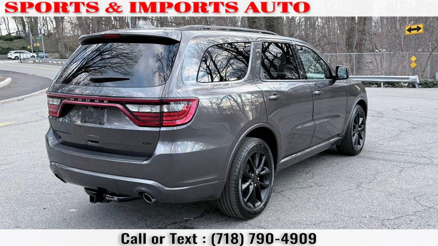 This 2018 Dodge Durango GT AWD is available for sale in Brooklyn, New York. It features a Bruiser Gray Clearcoat exterior with a Black leather interior and is equipped with an 8-speed automatic transmission and all-wheel drive. The vehicle offers a comfortable and powerful driving experience, making it a great choice for families or anyone seeking a versatile SUV.