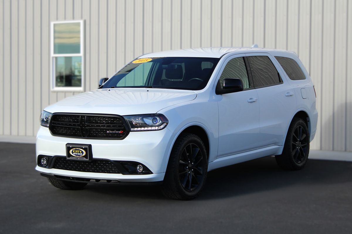 Our great looking 2018 Dodge Durango SXT AWD in White Knuckle Clearcoat is ready for all your family adventures! Powered by a 3.6 Liter V6 that produces 293hp connected to a paddle-shifted 8 Speed Automatic transmission. This All Wheel Drive SUV rewards you with nearly 26mpg on the highway and brisk acceleration that will have you leading the pack while showing off a distinctive grille, gloss black wheels, deep tinted glass, and a bulked-up hood that exudes attitude. The well-designed SXT cabin pampers you with abundant soft-touch surfaces and bright accents. Complete with heated front seats, a heated steering wheel, full power accessories, cruise control, and tri-zone automatic climate control, this seven-passenger SUV is full of great style and technology. Check out the touchscreen display, crank up the tunes, or make a phone call with Bluetooth® all while keeping your hands on the wheel. Drive our Dodge confidently with ABS, stability/traction control, trailer sway control, and an army of airbags. Designed with your family's adventures in mind, this is the perfect formula that you'll truly appreciate once you get behind the wheel of this Durango SXT. Save this Page and Call for Availability. We Know You Will Enjoy Your City Auto Sales LLC Test Drive Towards Ownership!