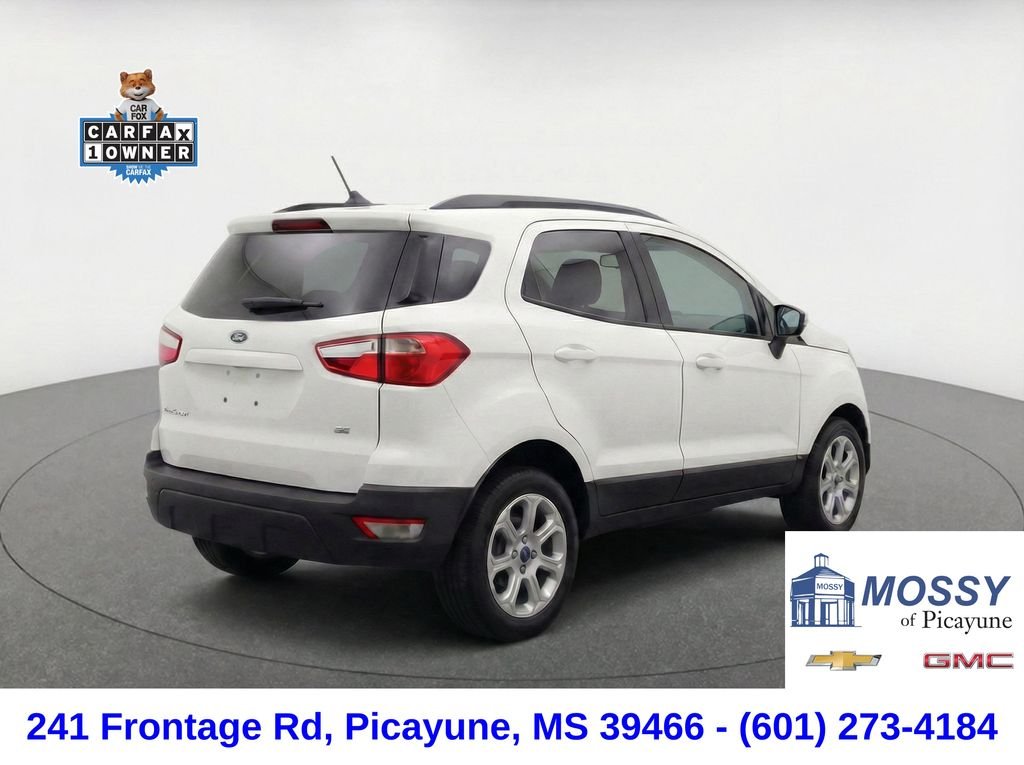 SMALL TOWN FRIENDLY SERVICE, BIG TIME SAVINGS at Mossy of Picayune! Thank you for the opportunity to earn your business! Our goal is to make this the easiest and most simple vehicle purchase experience ever! Please call us today at 601-273-8042 to schedule your VIP appointment. We have a whole staff of people that are eager, excited and motivated to EARN your BUSINESS!! This 2018 Ford EcoSport SE is a versatile and well-equipped compact SUV that's perfect for your active lifestyle. Boasting a sleek white exterior and a roomy, feature-packed interior, this EcoSport SE delivers an exceptional driving experience with its powerful yet efficient EcoBoost engine and responsive 6-speed automatic transmission. With an EPA-estimated 27 city/29 highway mpg, this EcoSport SE delivers impressive fuel efficiency to help you save at the pump. And with just 76,878 miles on the odometer, this gently used SUV has plenty of life left to offer. Whether you're commuting to the office, running errands around town, or embarking on a weekend adventure, this 2018 Ford EcoSport SE is the perfect companion. Its compact size and nimble handling make it easy to navigate crowded city streets and tight parking spaces, while its spacious interior and versatile cargo area provide ample room for all your gear. We appreciate the opportunity to earn your business! Please give us a call today at 601-273-8042 to schedule your VIP appointment or stop by our showroom at 241 Frontage Rd.
