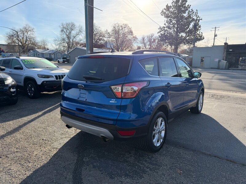 Sale Pending. 2018 Ford Escape SE 4-Door SUV in Blue with Gray interior. EcoBoost 1.5L Turbo I4 179hp 177ft. lbs. engine. Automatic climate control, rearview camera, heated front seats, and SYNC infotainment. On demand 4WD and automatic transmission. Contact Smart Buy Auto Sales LLC for more information.