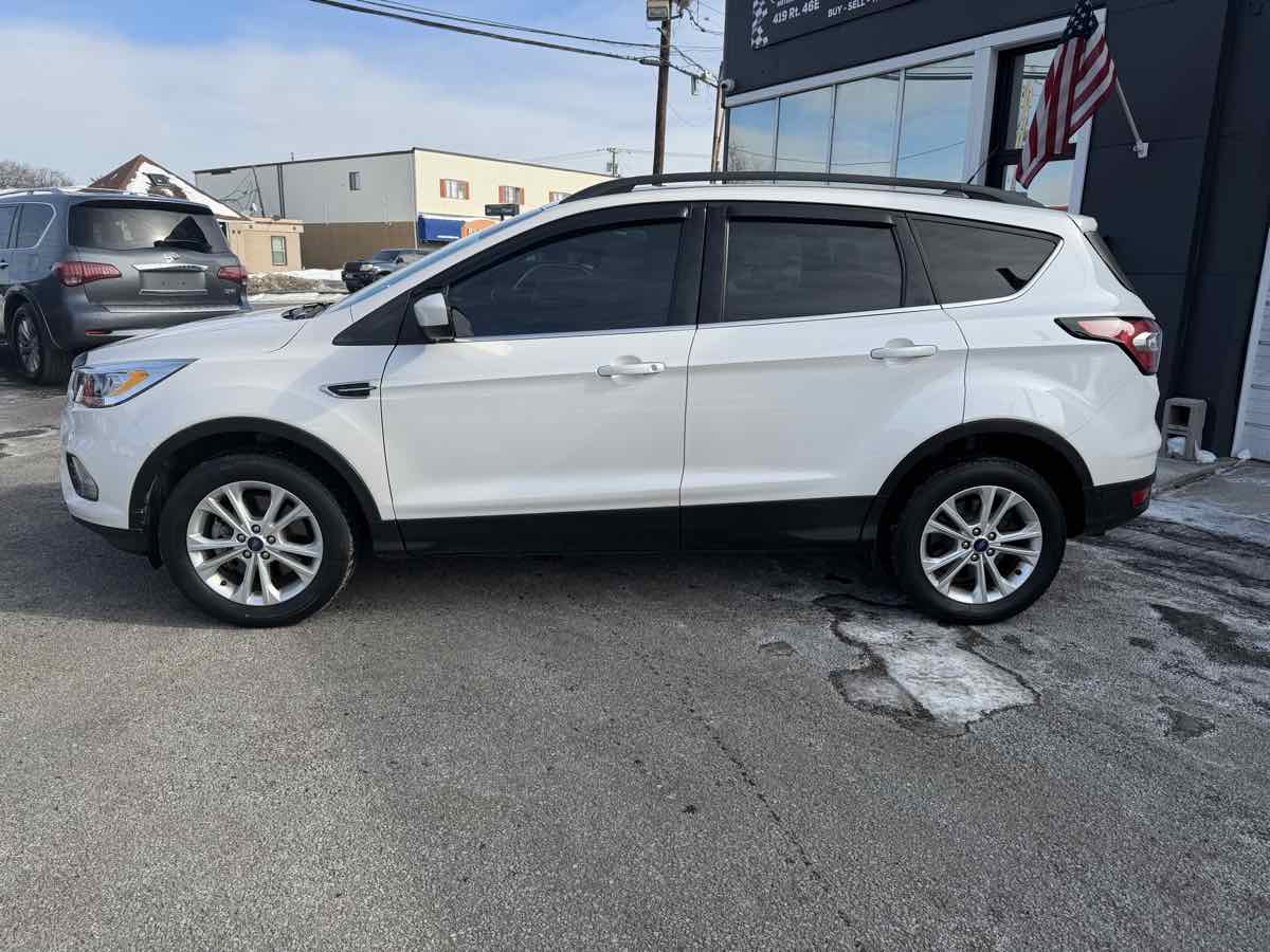 The 2018 Ford Escape SEL 4WD is a versatile and robust SUV that combines functionality with sophistication. Its exterior color, White Platinum Metallic Tri-Coat, offers a sleek and modern aesthetic, ensuring you make a statement wherever you go. The stylish design is complemented by an aerodynamic silhouette and fine detailing that gives it a refined look. This compact SUV is perfect for diverse driving conditions, thanks to its responsive drivetrain capabilities. Inside, the Escape offers a welcoming environment with its Charcoal Black interior, providing a sophisticated and comfortable setting for both driver and passengers. The cabin is tailored with premium materials, and the intuitive interfaces allow for seamless control of the vehicle’s features. Seating is spacious, with ample legroom, while the cargo area is flexible for various storage needs. Advanced technological features are easily accessible, enhancing your driving experience without being overly complicated. Powered by a 1.5L 4-cylinder engine, the SEL 4WD ensures both efficiency and a spirited performance. The four-wheel-drive system is designed to tackle any road or weather conditions confidently, offering enhanced traction and stability. Whether navigating city streets or venturing into off-road terrains, this vehicle provides a reliable and engaging drive. Safety is also prioritized with a range of features designed to protect you and your loved ones on every journey.