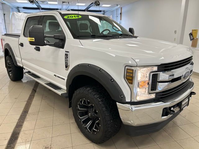 Veero Ford & CDJR of Morris is excited to offer this trusty 2018 Ford F-250SD XLT in Oxford White, beautifully equipped with GVWR: 10,000 lb Payload Package, Order Code 603A, 4WD, 4-Wheel Disc Brakes, 7 Speakers, ABS brakes, Air Conditioning, Alloy wheels, AM/FM radio: SiriusXM, Brake assist, Bumpers: chrome, CD player, Cloth 40/20/40 Split Bench Seat, Compass, Delay-off headlights, Driver door bin, Driver vanity mirror, Dual Extra Heavy-Duty Alternators (Total 377-Amps), Dual front impact airbags, Dual front side impact airbags, Electronic Stability Control, Emergency communication system: 911 Assist, Engine Block Heater, Exterior Parking Camera Rear, Front Center Armrest w/Storage, Front reading lights, Fully automatic headlights, Heated door mirrors, Illuminated entry, Low tire pressure warning. Sales Tax, License and Parts only are additional to the advertised price. Check out the rest of the features on this vehicle.