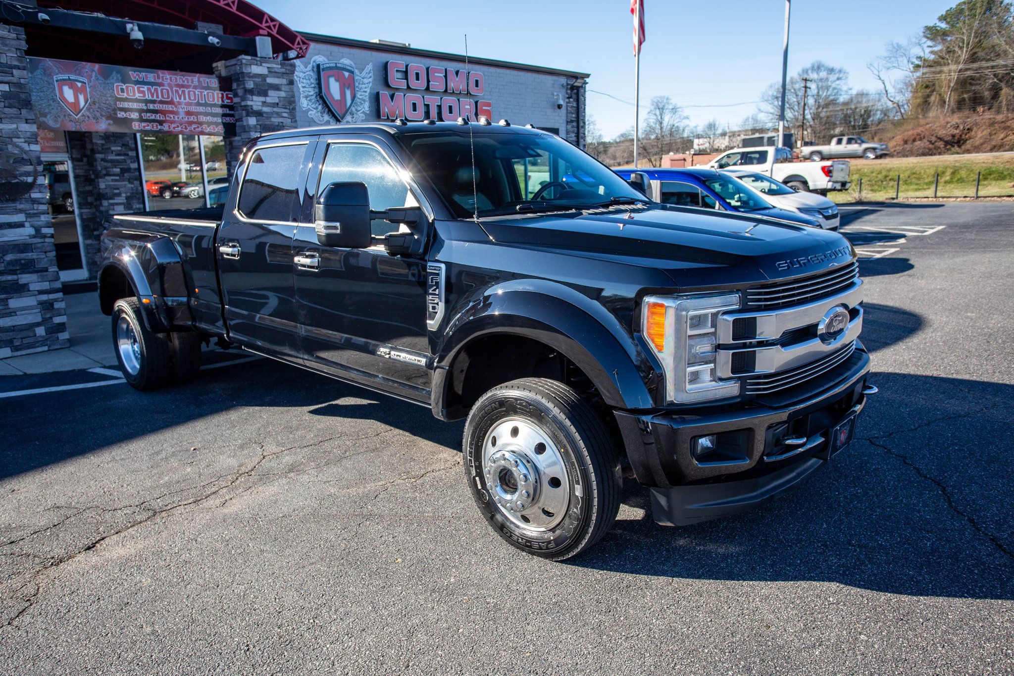 Cosmo Motors presents this commanding Ford F-450 DRW Limited, a heavy-duty luxury truck built to handle the toughest jobs while delivering first-class comfort. Finished in Shadow Black with a rich Camelback two-tone leather interior, this F-450 makes a bold statement whether it's hooked to a trailer or cruising the highway. Under the hood, the legendary 6.7L Power Stroke turbo diesel V8 provides massive torque and effortless towing, enhanced by Monroe Magnum front suspension for improved ride quality and control. The fifth-wheel and gooseneck prep package make this truck ready for serious hauling, while performance upgrades like the S&B intake and Fleece Performance Engineering filter assembly add extra capability and efficiency. Inside, luxury meets functionality with heated and ventilated front seats, heated rear seats, advanced navigation, and a 360-degree camera system that makes maneuvering this beast surprisingly easy. Powerful, refined, and fully equipped, this F-450 Limited is the ultimate blend of strength and sophistication-available now at Cosmo Motors.