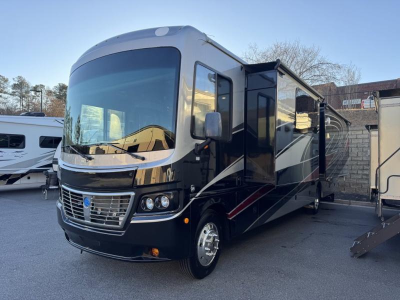 Holiday Rambler Vacationer class A motor home 35P highlights: Quad Slide Outs, King Bed, Residential Refrigerator, Two Entry Bathroom, and 16,102 miles. You will enjoy the conveniences that this Holiday Rambler 35P Vacationer provides for your next adventure. This class A gas coach features quad slide outs for increased walking around space, a double entry bath, a residential refrigerator, plus so much more! In the spacious living area you will find a sofa and a 42" x 72" facing dinette plus a driver/passenger pedestal table. Enjoy watching TV at the 40" LED TV. In the bedroom there is a king Eurotop bed plus extra storage space with the wardrobe and dresser! When the road is calling your name and you are ready for any adventure whether a long road trip across the country visiting monuments along the way, or maybe you prefer a quiet campground near your home, in either case you will want a Holiday Rambler Vacationer class A motor home! There are plenty of cab comforts such as the driver/passenger cup holders, reading lights, plus the pedestal table! In the living area you will find a home theater system, oversized windows so you can enjoy your view, plus residential style seating! The fully equipped kitchen is ready when you are. Here you will find a sink cover/cutting board, a stainless steel convection microwave, plus a nice tile backsplash with stainless accents. Come make plenty of memories with your family when you choose to travel and camp with a Holiday Rambler Vacationer!
