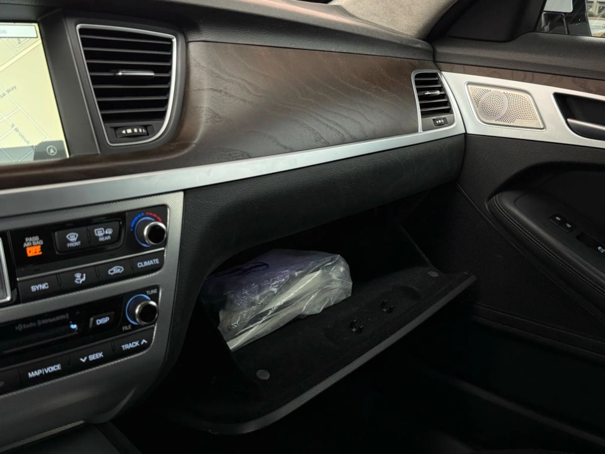 The 2018 Genesis G80 5.0L Ultimate RWD stands out with its striking Casablanca White exterior, exuding elegance and sophistication on every journey. Under the hood lies a robust 5.0L 8-cylinder engine that delivers both power and a smooth driving experience. Complementing its performance, the stylish sedan is equipped with a distinctive suite of features, ensuring safety and luxury on the road. This Genesis G80 is embellished with a heads-up display and a panoramic sunroof, blending advanced technology with a touch of class. Its black premium leather seating surfaces promise utmost comfort, enhanced by heated and ventilated seats that cater to your climate preferences. Safety is paramount, with features such as active cruise control, forward collision warning, and a blind spot monitor offering peace of mind during every drive. Convenience is seamlessly integrated, from the Bluetooth connectivity to the rain-sensing wipers and parking assist, making every trip enjoyable. The thoughtful inclusion of a reversible cargo tray and mud guards provides practicality, while the first aid kit and carpeted floor mats ensure preparedness and cleanliness. Experience luxury refined in the 2018 Genesis G80, where every detail is designed for a first-class driving experience.