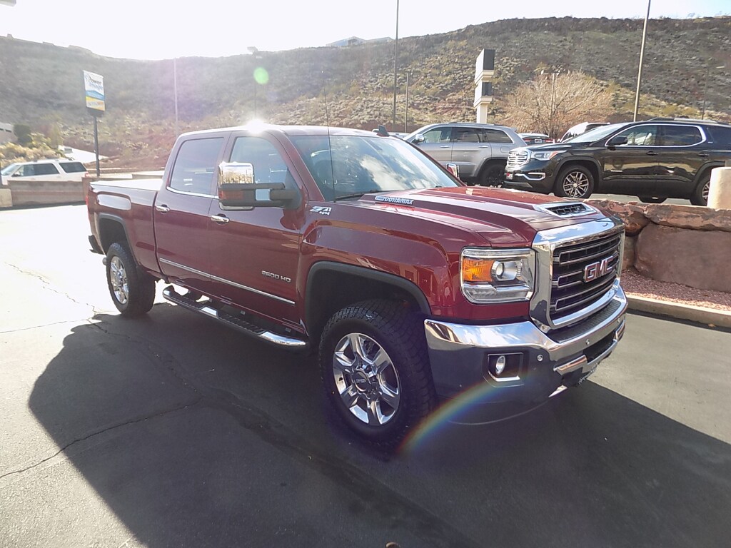 One Owner 2018 GMC Sierra 2500 SLT 4WD with only 62,000 Miles! Very Clean Inside and out! Leather Seats, 6 Passenger Seating, Heated Seats, Bose Stereo, Backup Camera, Retractable Tonneau Cover, Spray In Bedliner, B&W Turnover Ball, New Tires, and all the right options! Powerfully, durable, and ready for work or play. Located in St. George, UT, this rugged diesel truck pairs a stout V8 6.6L Duramax engine with four-wheel drive to deliver exceptional towing capacity, confident off-road performance, and long-haul fuel economy. The SLT trim adds premium comfort and convenience, including heated seats for cold mornings, hands-free Bluetooth for safe connectivity, and satellite/XM Radio for endless entertainment on every drive. Equipped with an Off-Road Package, this GMC Sierra 2500 features suspension and traction upgrades designed to tackle rough terrain while maintaining a composed ride on pavement. The spacious cabin offers thoughtful amenities and durable materials built to handle jobsite demands without sacrificing everyday comfort. Advanced connectivity and audio options make it an ideal choice for work, travel, and family outings alike. This 2018 GMC Sierra 2500 SLT is competitively priced and represents the best price available in the St. George market—an exceptional value for buyers seeking capability and refinement in one package. Whether you need robust towing performance, diesel efficiency, or off-road readiness, this GMC Sierra delivers.