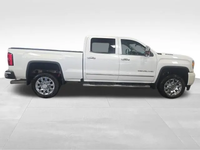 The 2018 GMC Sierra 2500HD Denali is a powerful and capable pickup truck designed for serious work and refined comfort. With just over 66,000 miles, this diesel-powered beast offers impressive performance with a 6.6-liter turbocharged V8 engine delivering up to 445 horsepower and 910 lb-ft of torque. Its robust 4WD system and heavy-duty suspension make it a reliable choice for hauling, towing, or tackling tough terrain. The striking White Frost Tricoat exterior and Cocoa/Dark Sand interior create a sophisticated look that stands out on the road. Inside, you'll find a suite of advanced features including Apple CarPlay, Bluetooth, a premium audio system, navigation, satellite radio readiness, and a sunroof. Heated and memory seats ensure comfort during any season, while the backup camera, collision warning, fog lights, and xenon headlights enhance safety and visibility. The truck's wireless phone charging and Wi-Fi hotspot keep you connected, making it an ideal blend of workhorse capability and modern convenience.