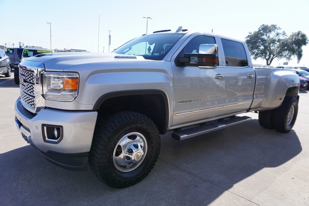 This 2018 GMC Sierra 3500HD Denali in Quicksilver Metallic includes the following features: Duramax 6.6L V8 Turbodiesel Allison 1000 6-Speed Automatic 4WD Driver Alert Package (Forward Collision Alert and Lane Departure Warning System), Duramax Plus Package (Chrome Recovery Hooks), Preferred Equipment Group 5SA (110-Volt AC Power Outlet, 150 Amps Alternator, 8" Multi-Color Customizable Driver Display, Auto-Dimming Inside Rear-View Mirror, Chrome Bodyside Moldings, Chrome Door Handles, Chrome Power-Adjustable Heated Outside Mirrors, Color-Keyed Carpeted 1st & 2nd Row Floor Mats, Color-Keyed Carpeting Floor Covering, Deep-Tinted Glass, Driver & Front Passenger Visors, Dual-Zone Automatic Climate Control, Electric Rear-Window Defogger, Electronic Shift Transfer Case, EZ-Lift & Lower Tailgate, Front Body-Color Bumper, Front Frame-Mounted Black Recovery Hooks, Front Halogen Fog Lamps, GMC 4G LTE, GMC Connected Access, HD Radio, Heated & Ventilated Front Seating, Leather Wrapped Heated Steering Wheel, Manual Tilt-Wheel/Telescoping Steering Column, OnStar & GMC Connected Services Capable, Power Adjustable Pedals, Power Sliding Rear Window w/Defogger, Power windows. Quicksilver Metallic 2018 GMC Sierra 3500 High is a work truck.