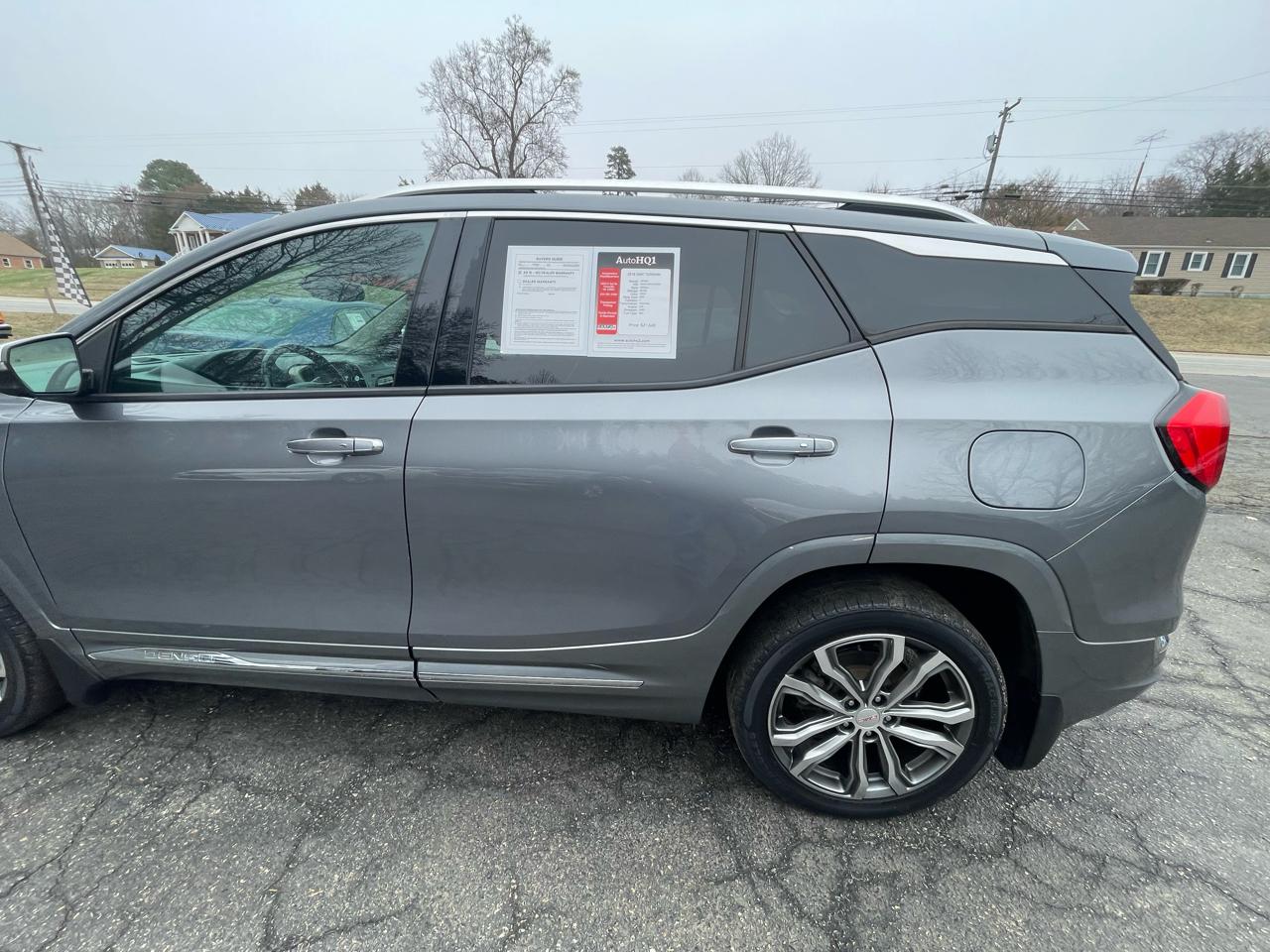 Satin Steel Metallic 2018 GMC Terrain Denali AWD 9-Speed Automatic 2.0L Turbocharged AWD, 2 USB Data Ports, 2 USB Data Ports w/Auxiliary Input Jack, 4-Wheel Disc Brakes, 7 Speakers, 8-Way Power Driver Seat Adjuster, ABS brakes, Advanced Safety Package, AM/FM radio: SiriusXM, Apple CarPlay/Android Auto, Auto-dimming door mirrors, Automatic Parking Assist, Automatic temperature control, Bird's Eye View Surround Vision, Bluetooth For Phone, Brake assist, Comfort Package, Delay-off headlights, Driver Alert Package II, Dual front impact airbags, Dual front side impact airbags, Electronic Stability Control, Exterior Parking Camera Rear, Following Distance Indicator, Forward Collision Alert, Front dual zone A/C, Front fog lights, Fully automatic headlights, HD Radio, Heated door mirrors, Heated front seats, Heated Rear Outboard Seating Positions, Heated steering wheel, IntelliBeam Auto High Beam Headlamp Control, Lane Keep Assist w/Lane Departure Warning, License Plate Front Mounting Package, Low Speed Forward Automatic Braking, Memory seat, Navigation System, Panic alarm, Perforated Leather-Appointed Seat Trim w/Denali Logo, Power door mirrors, Power Driver Lumbar Control, Power driver seat, Power Liftgate, Power passenger seat, Power steering, Power windows, Preferred Equipment Group 5SA, Premium 7-Speaker Bose Sound System w/Amplifier, Radio: GMC Infotainment System w/Navigation, Rear window defroster, SD Card Reader, Security system, SiriusXM Satellite Radio, Skyscape Power Sunroof w/Power Sunscreen, Speed control, Telescoping steering wheel, Tilt steering wheel, Turn signal indicator mirrors, Ventilated Driver Seat, Ventilated Front Passenger Seat, Wheels: 19" x 7.5" Ultra-Bright Machined Aluminum, Wireless Charging For Devices. Recent Arrival! 21/26 City/Highway MPG Visit Automotive Headquarters online at autohq1.com to see more pictures of this vehicle or call us at 434-391-3338 today to schedule your test drive.