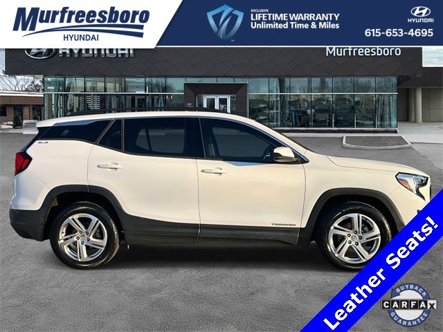 2018 Summit White 4D Sport Utility GMC Terrain SLE 1.5L DOHC FWD 9-Speed Automatic. Leather Seats, Back - up Camera, Apple Carplay/Android Connect, One Owner, Warranty Available, Local Trade, Cruise Control, Diagnostic Alerts, Multi-zone Climate Controls, Keyless Entry, Bluetooth® Hands Free. Odometer is 32228 miles below market average!