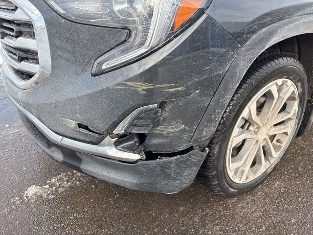 Designed to conquer your day, our Low Mile 2018 GMC Terrain SLT AWD is a prime example of Pro Grade engineering in Graphite Gray Metallic! Powered by a high-performance TurboCharged 2.0 Liter 4 Cylinder that offers 252hp paired with an innovative 9 Speed Automatic transmission for swift passing ability. This All Wheel Drive SUV also provides a confident ride, excellent handling, and nearly 26mpg on the road. To make a bold impression, our Terrain shows off a striking chrome grille, LED lighting, fog lamps, silver-painted roof rails, and alloy wheels. The expressive SLT interior greets you with leather heated front seats, eight-way power for the driver, a leather-wrapped multifunction steering wheel, dual-zone automatic climate control, and technology for easy connectivity thanks to an 8-inch touchscreen, Android Auto/Apple CarPlay, Bluetooth, WIFi compatibility, and a six-speaker sound system. Our Terrain's smart cargo solutions make it a great choice for your active lifestyle. GMC offers a backup camera, ABS, stability/traction control, and numerous airbags that include head-curtain coverage, just a few of the features onboard for your peace of mind. Radiating premium good looks.