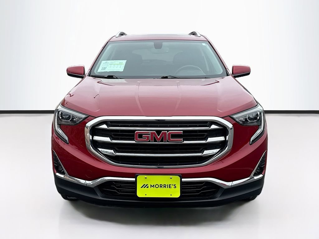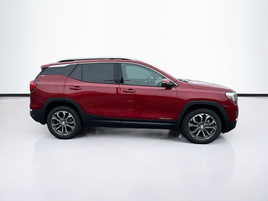 'Local trade SLT -AWD Terrain equipped with hands free liftgate, heated steering wheel, power liftgate, power passenger seat, sunroof, factory hitch, 2.0 turbocharged engine, remote start, back up camera, keyless start and much more! Recent Arrival! Clean CARFAX. CARFAX One-Owner. 2018 GMC Terrain SLT Red Quartz Tintcoat AWD 9-Speed Automatic 2.0L Turbocharged Odometer is 46760 miles below market average! 21/26 City/Highway MPG'