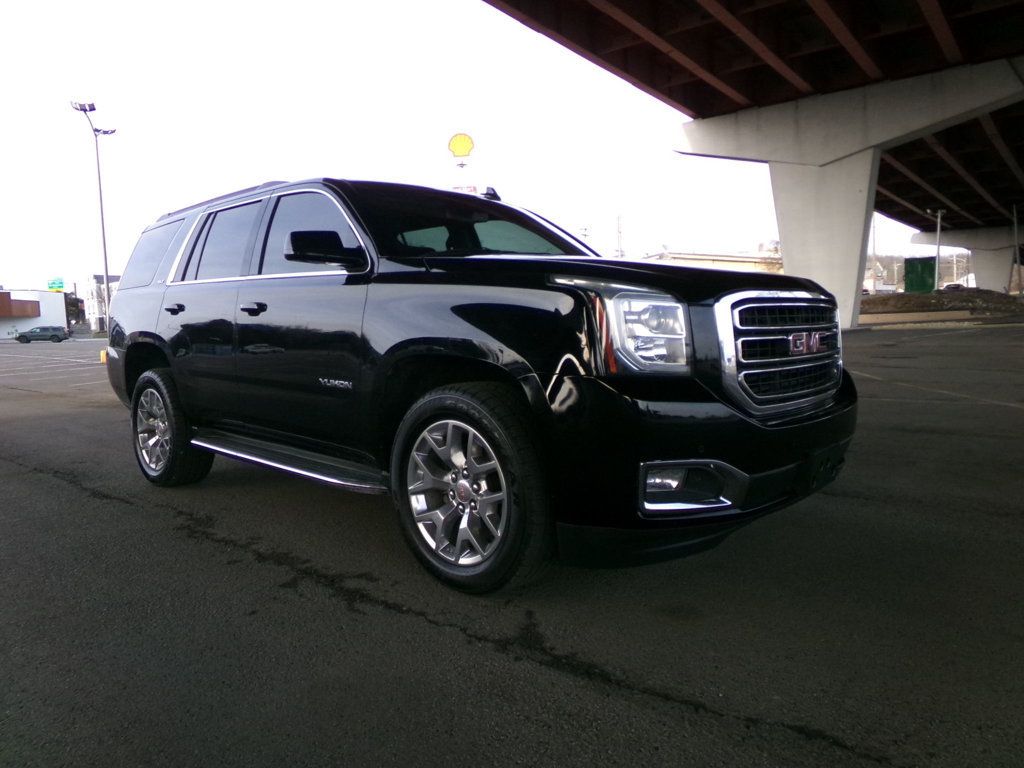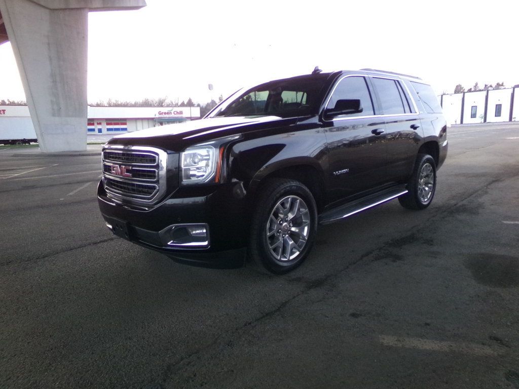 2018 Yukon SLT! Black beauty in and out. Awesome! Loaded to the max and truly a cut above! Beautiful Onyx Black with black hides, power roof, navigation, 20 inch factory wheels! 2018 black GMC Yukon SLT 4WD featuring power moonroof, factory navigation, heated/cooled seats, power liftgate, all power options, plush leather seats, back-up camera. The list goes on and on. V8, 4WD, polished factory chrome wheels, the best color combo. Black in and out. 1 owner southern owned, clean Carfax garaged kept non smoker. Obviously well maintained by the previous owner. Excellent condition inside and out. Riding on an excellent set of Goodyear tires. Rides and drives just as good as it looks. And this top of the line SLT Yukon is a beauty. A lot of luxury for the money. Hurry in or call 615-859-9400 today before someone gets your best in class top of the line 2018 GMC Yukon SLT 4WD with all the right stuff!