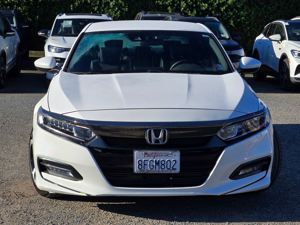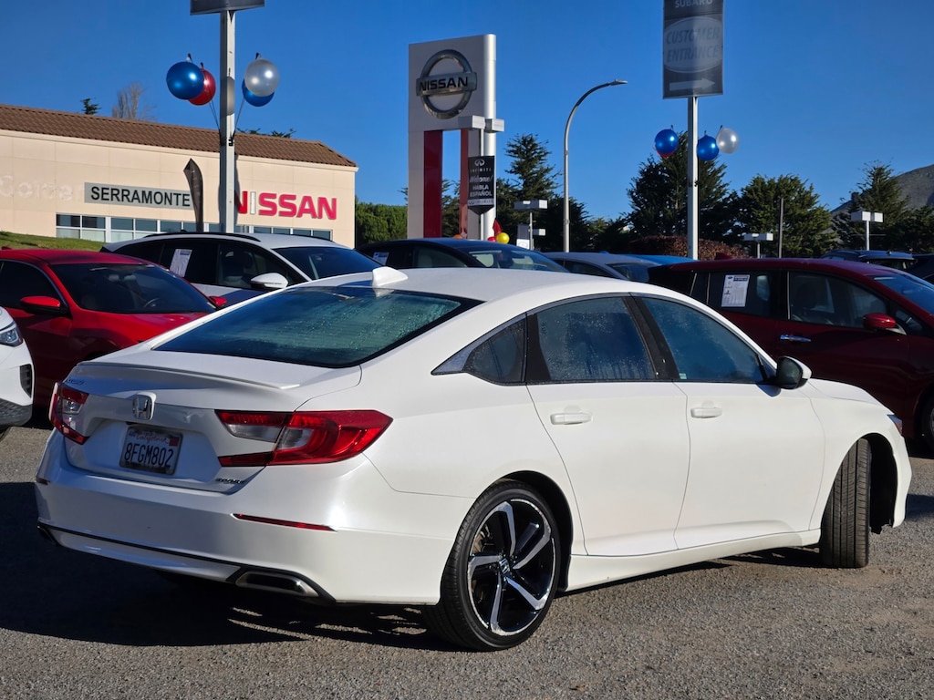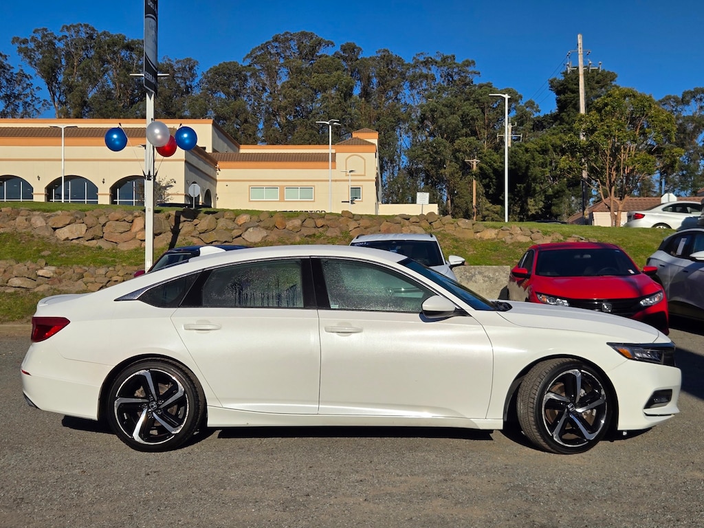 New Price! Carfax One-Owner. White 2018 Honda Accord Sport FWD CVT 1.5T I4 DOHC 16V Turbocharged VTEC 112 point inspection, 4-wheel disc brakes, 8 speakers, ABS brakes, air conditioning, alloy wheels, AM/FM radio, Apple CarPlay/Android Auto, auto high-beam headlights, automatic temperature control, brake assist, delay-off headlights, dual front impact airbags, dual front side impact airbags, electronic stability control, emergency communication system: HondaLink, exterior parking camera rear, four wheel independent suspension, front anti-roll bar, front bucket seats, front center armrest, front dual zone A/C, fully automatic headlights, knee airbag, leather shift knob, leather steering wheel, low tire pressure warning, occupant sensing airbag, outside temperature display, overhead airbag, panic alarm, power door mirrors, power driver seat, power steering, power windows, radio data system, radio: 180-Watt AM/FM audio system, rear anti-roll bar, rear window defroster, remote keyless entry, security system, speed control, speed-sensing steering, speed-sensitive wipers, split folding rear seat, steering wheel mounted audio controls, tachometer, telescoping steering wheel, tilt steering wheel, traction control, trip computer, variably intermittent wipers, wheels: 19" machine-finished alloy with black inserts. Recent Arrival! Odometer is 28,074 miles below market average! 29/35 City/Highway MPG. Serramonte Kia is dedicated to your satisfaction before, during, and after your purchase. We'll go the extra mile to take care of you.