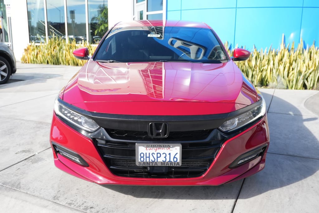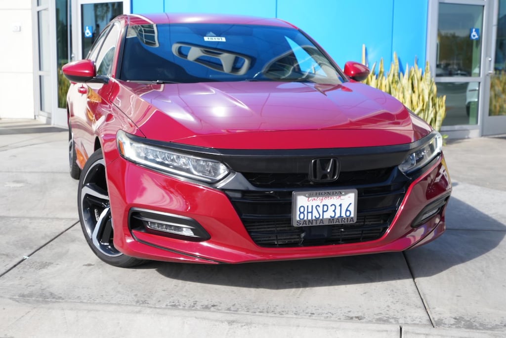 When you choose this 2018 Honda Accord Sport from Honda Santa Maria, you're not just buying a used car - you're investing in quality, reliability, and peace of mind. Located in Santa Maria, CA, we're proud to offer the best selection of certified pre-owned Hondavehicles and top-tier used cars in our local area. No Accidents! San Marino Red, Black, cloth seat trim. Forward collision mitigation is always looking ahead. Pedestrians don't always stop, look, and listen, but with Pedestrian Impact Prevention, your vehicle is equipped to better see them and avoid them. Hands-on cruise control. Set it and forget it. Road trips used to be stressful. Cruise control only managed speed, but not distance or safety. Now, with hands-on cruise control, simply set your desired speed and let sensor technology maintain a safe distance between you and surrounding vehicles. It slows you down; speeds you up and even keeps you in your own lane. Smart device mirroring brings together safety and convenience by making it easier to find what you're looking for while keeping your eyes on the road. We strive to ensure that all vehicles are properly priced, but occasionally errors may occur. Please call to confirm vehicle price and availability. Honda Santa Maria is dedicated to your satisfaction before, during, and after your purchase. We'll go the extra mile to take care of you.