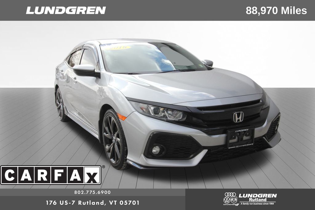 Full financing options available for all levels of credit. We want your trade in! We are Carfax vehicle history certified, buy with confidence. Civic Sport, 4D Hatchback, 6-Speed Manual, Alloy wheels, Exterior Parking Camera Rear, Radio: 160-Watt AM/FM Audio System, Remote keyless entry, Telescoping steering wheel, Tilt steering wheel. 2018 Civic Sonic Gray Pearl Honda Sport FWD. Odometer is 11484 miles below market average! 29/38 City/Highway MPG 1.5L I4 DOHC 16V.
