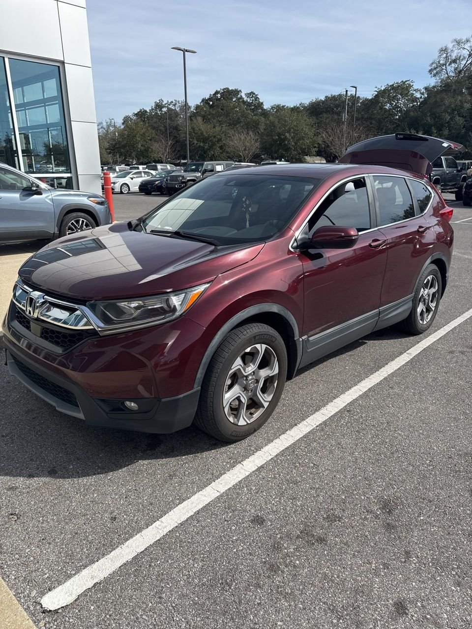 2018 Honda CR-V EX Red FWD CVT 28/34 City/Highway MPG 1.5L I4 DOHC 16V. Recent Arrival! Purchase with confidence! Why? Because rather than using internet price guides that take you hours to research, we have already done the ground work for you. We also take into consideration the local market value all the way out to a 500 mile radius for the vehicle that you are researching. We then attach a fair price that is based on the history and condition of the vehicle. After you have physically inspected and driven the vehicle, ask your product specialist for the research market analysis which provides data from multiple sources in our area as well as internet buying guides. Find a like vehicle for less money? Show us. We are happy to discuss what makes our vehicle different, or we will match the price on a like vehicle in our area.