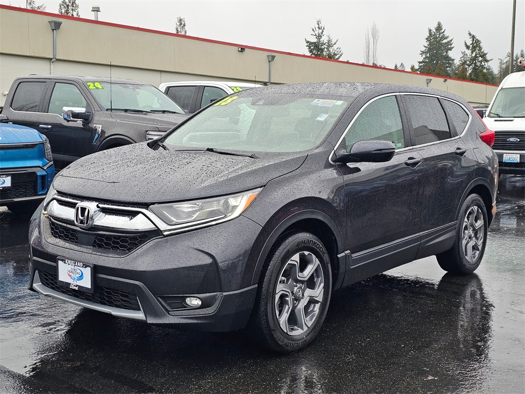 CARFAX One-Owner. Odometer is 40316 miles below market average! One owner, AWD, 18" Alloy Wheels, 4-Wheel Disc Brakes, 5.64 Axle Ratio, 8 Speakers, ABS brakes, Air Conditioning, Alloy wheels, AM/FM radio: SiriusXM, Apple CarPlay/Android Auto, Auto High-beam Headlights, Auto-dimming Rear-View mirror, Automatic temperature control, Blind Spot Information (BSI) System warning, Brake assist, Bumpers: body-color, Compass, Delay-off headlights, Driver door bin, Driver vanity mirror, Dual front impact airbags, Dual front side impact airbags, Electronic Stability Control, Exterior Parking Camera Rear, Four wheel independent suspension, Front anti-roll bar, Front Bucket Seats, Front Center Armrest, Front dual zone A/C, Front fog lights, Front reading lights, Fully automatic headlights, Garage door transmitter: HomeLink, Heated door mirrors, Heated Front Bucket Seats, Heated front seats, Illuminated entry, Leather Seat Trim, Leather Shift Knob, Low tire pressure warning, Memory seat, Occupant sensing airbag, Outside temperature display, Overhead airbag, Overhead console, Panic alarm, Passenger door bin, Passenger vanity mirror, Power door mirrors, Power driver seat, Power Liftgate, Power moonroof, Power passenger seat, Power steering, Power windows, Radio data system, Radio: AM/FM/SiriusXM Audio System, Rear anti-roll bar, Rear seat center armrest, Rear window defroster, Rear window wiper, Remote keyless entry, Security system, Speed control, Speed-sensing steering, Speed-Sensitive Wipers, Split folding rear seat, Spoiler, Steering wheel mounted audio controls, Tachometer, Telescoping steering wheel, Tilt steering wheel, Traction control, Trip computer, Turn signal indicator mirrors, Variably intermittent wipers, AWD. 2018 Honda CR-V EX-L 1.5L I4 DOHC 16V CVT AWD 4D Sport Utility Gunmetal Metallic 27/33 City/Highway MPG. To see more quality vehicles like this one right here just click on http://www.fordofkirkland.com or dial (425) 500-1074.