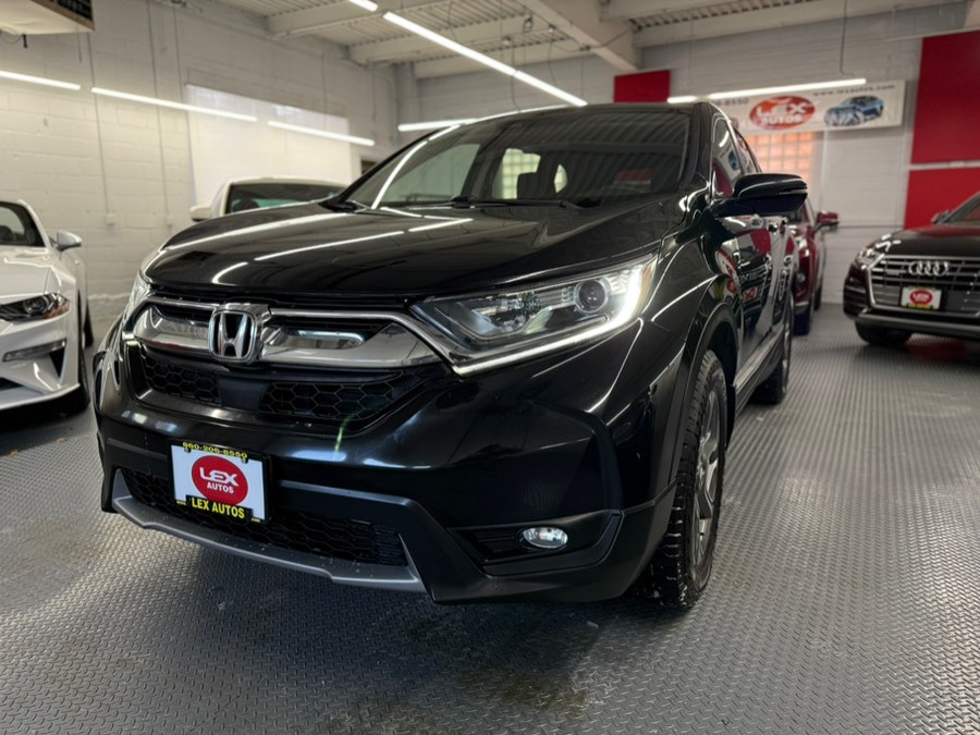2018 Honda CR-V EX AWD, available for sale in Hartford, Connecticut. This vehicle features a 1.5L 4-cylinder turbocharged engine, all-wheel drive, and a comfortable interior with black cloth seats. The CR-V offers a smooth and reliable ride, making it a great choice for families or individuals seeking a versatile and fuel-efficient SUV.