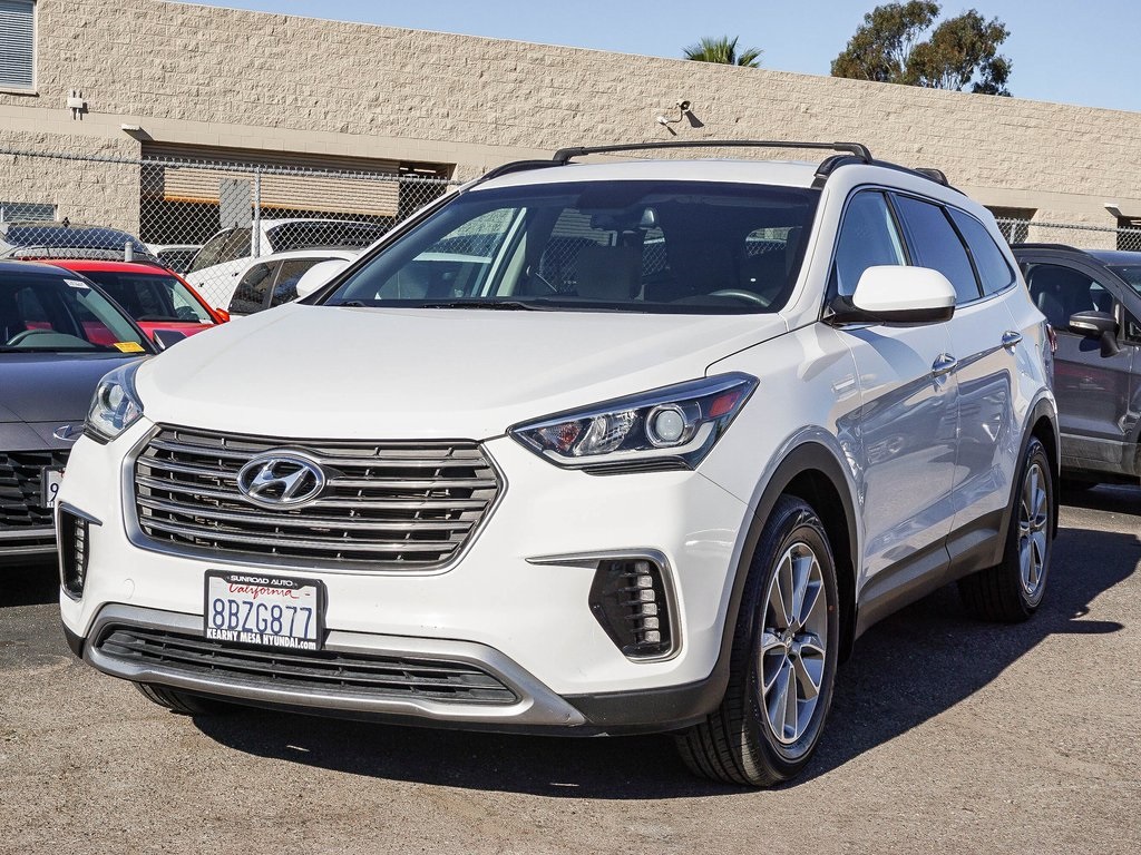 One owner, Santa Fe SE, 4D Sport Utility, 3.3L V6 DGI DOHC 24V, 6-Speed Automatic with Shiftronic, FWD, Monaco White, Beige w/Cloth Seating Surfaces w/Yes Essentials, 18" Alloy Wheels, 3rd row seats: split-bench, 4-Wheel Disc Brakes, 6 Speakers, ABS brakes, Air Conditioning, AM/FM radio: SiriusXM, Apple CarPlay & Android Auto, Automatic temperature control, Brake assist, CD player, Cloth Seating Surfaces w/Yes Essentials, Delay-off headlights, Driver door bin, Driver vanity mirror, Dual front impact airbags, Dual front side impact airbags, Emergency communication system: Blue Link, Front anti-roll bar, Knee airbag, Low tire pressure warning, Occupant sensing airbag, Overhead airbag, Rear anti-roll bar, Brake assist, Electronic Stability Control, Exterior Parking Camera Rear, Delay-off headlights, Fully automatic headlights, Panic alarm, Security system, Speed control, Bumpers: body-color, Heated door mirrors, Mudguards, Power door mirrors, Roof rack: rails only, Spoiler.