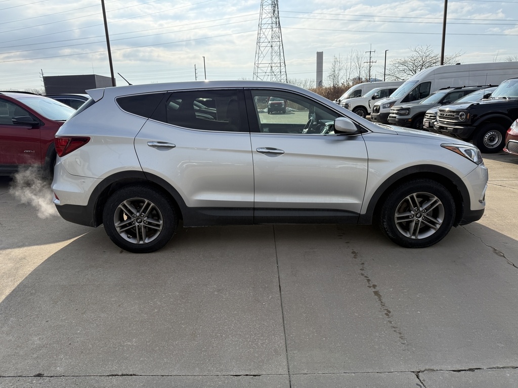 Drive home in a stylish and reliable 2018 Hyundai SANTA FE Sport 2.4L! This silver 4-door SUV offers comfort and versatility with features like Bluetooth connectivity, a rearview camera system, 5-inch infotainment screen, and USB/iPod/Aux audio inputs for all your entertainment needs. Enjoy added convenience with power windows, keyless entry, cruise control, and a multi-function steering wheel. The spacious interior includes split-folding rear seats, multiple cupholders, and ample storage options. Safety comes standard with advanced airbags, traction and stability control, hill descent assist, and a tire pressure monitoring system. Aluminum alloy wheels and chrome accents give this SUV a modern look, while the Theta II 2.4L engine delivers a smooth, efficient ride. Ideal for families or anyone seeking a dependable and well-equipped vehicle.