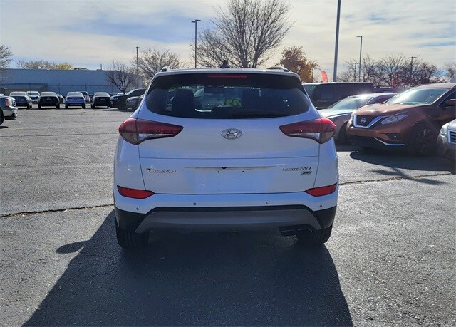 Bluetooth / iPhone Integration, Navigation System, Leather, Local Trade, AWD, 4.2" Color LCD Electroluminescent Cluster, Automatic Emergency Braking (AEB), Front & Rear LED Maplights, Heated Rear Seats, High-Intensity Discharge Headlights, Lane Departure Warning System, Navigation System, Option Group 02, Panoramic Sunroof, Rear Parking Sensors, Ultimate Package 02, Ventilated Front Seats. Clean CARFAX. 24/28 City/Highway MPG 2018 Hyundai Tucson Limited Dazzling White AWD 7-Speed Automatic 1.6L I4 DGI Turbocharged DOHC 16V ULEV II 175hp.