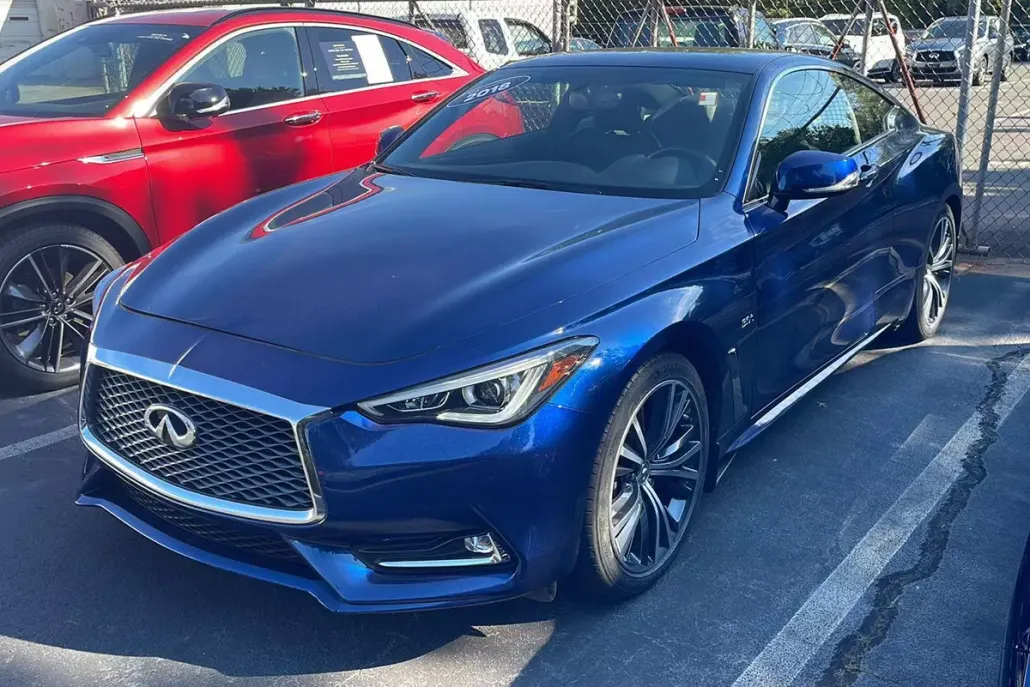 Infiniti, was launched in 1989 in the United States. It quickly gained recognition for its focus on driver-centric design, performance luxury, and a high level of customer service exemplified by the "Total Ownership Experience" program. The brand's history is marked by innovations in engine technology and safety features, like the acclaimed VQ series V6 engines and pioneering driver-assist systems such as Intelligent Cruise Control, RearView Monitor, Lane Departure Warning, and Blind Spot Intervention. Throughout the 1990s and 2000s, Infiniti continued to innovate, introducing the highly acclaimed VQ series V6 engines in 1995, considered among the world's best for over a decade. The brand also pioneered numerous driver-assist and safety features, including Intelligent Cruise Control, RearView Monitor, Voice Recognition, Lane Departure Warning, Lane Departure Prevention, Around View Monitor, and Blind Spot Intervention, among others. Notable models like the G35 sport sedan and FX crossover further cemented Infiniti's position in the luxury market. Today, Infiniti continues to build on this legacy with models like the QX80, Q50, QX50, QX55, and QX60, emphasizing its "Modern Japanese Luxury" design philosophy and commitment to technological advancement. This 2018 Infiniti Q60 3.0t LUXE has a Iridium Blue exterior and a Graphite interior color. 21,088 miles. Stock Number JM392938. No Accidents! One Owner!