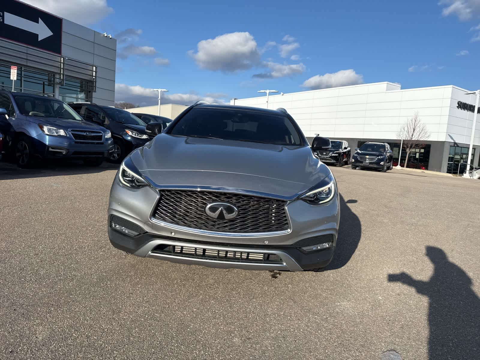 Blade Silver 2018 INFINITI QX30 ESSENTIAL AWD 7-Speed Automatic 2.0L I4 DOHC Turbocharged. Price does not include licensing costs, registration fees, taxes, $399 reconditioning expense and $599 Permaplate Interior/Exterior and dealer doc fee of $280, which are to be paid by the consumer. Recent Arrival! Odometer is 22794 miles below market average! 21/30 City/Highway MPG.