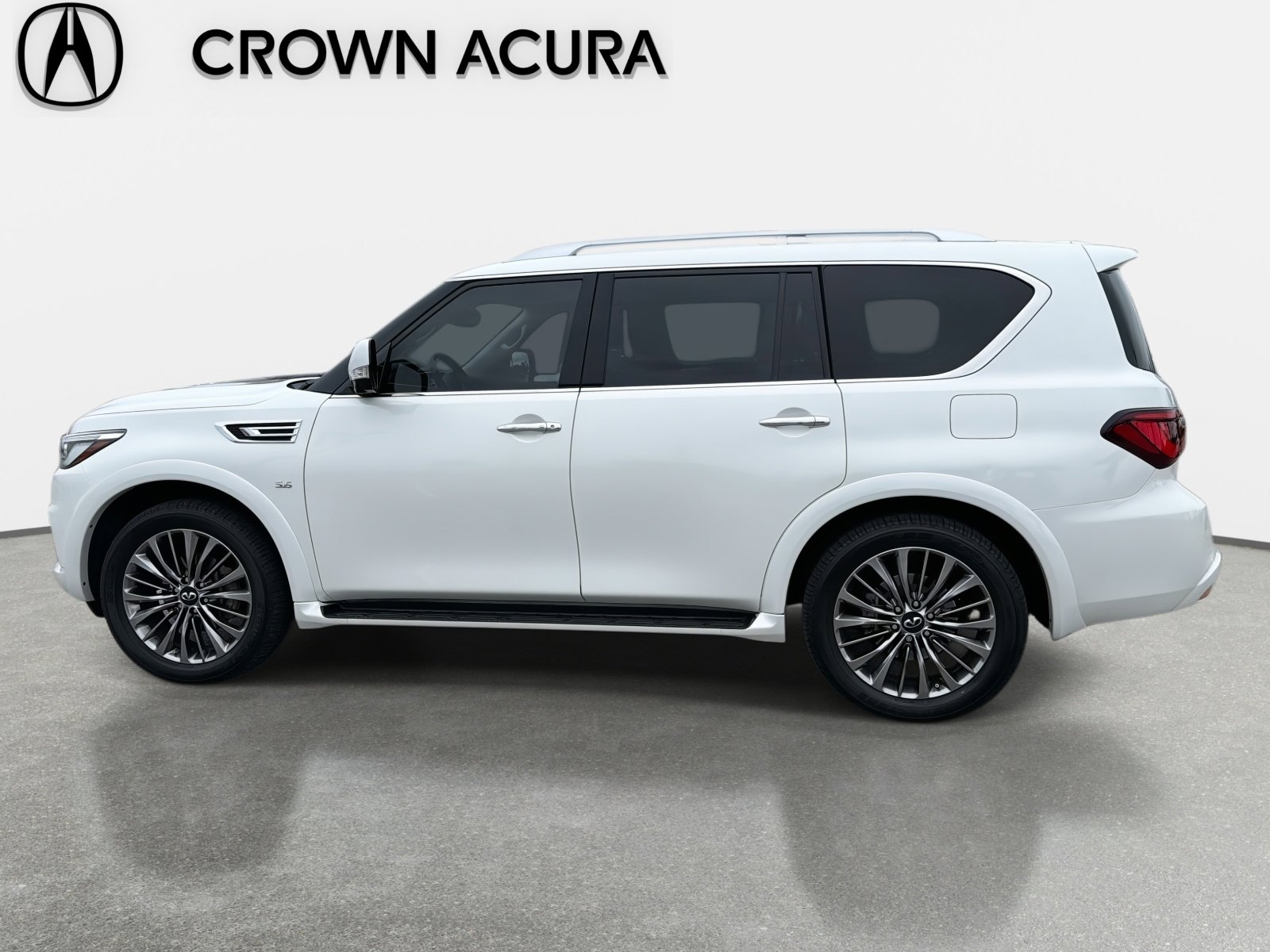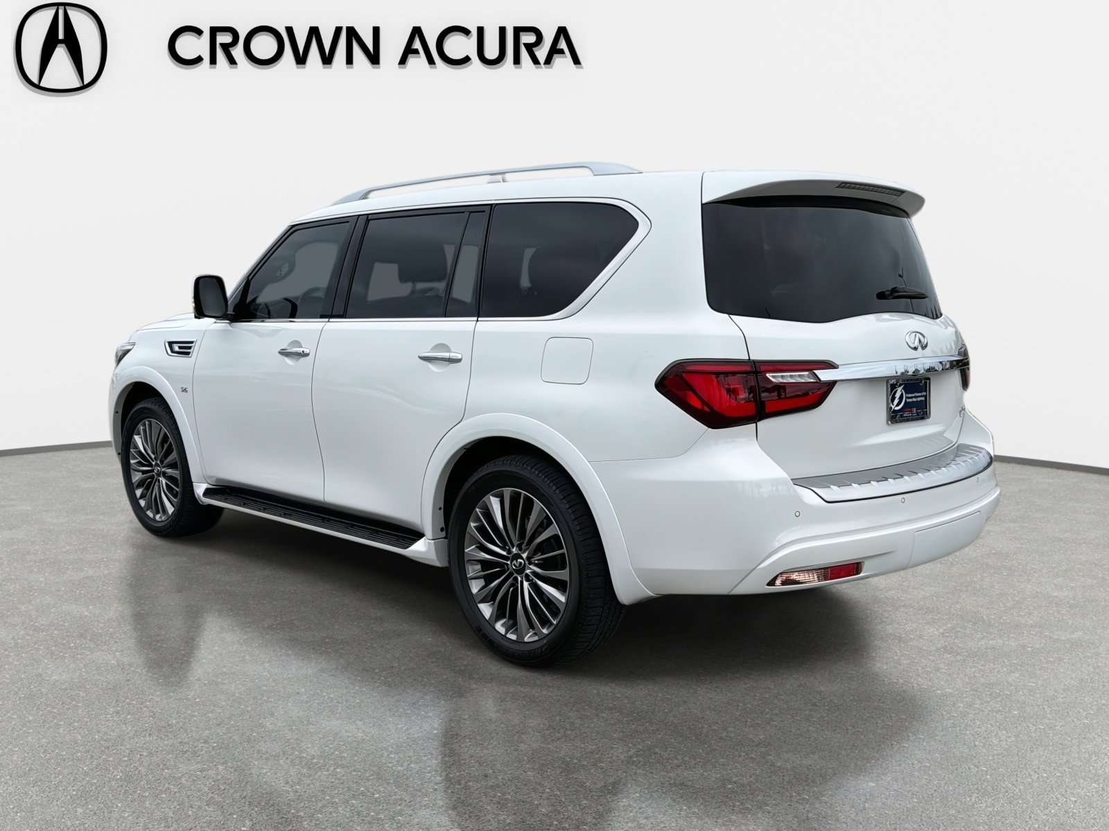 Moonstone White 2018 INFINITI QX80. Awards: 2018 KBB.com 5-Year Cost to Own Awards. All prices plus sales tax, tag and titling, and dealer service fee of $1195.00, which represents cost and profits to the selling dealer for items such as cleaning, inspecting, adjusting new vehicles and preparing documents related to the sale. All Services Performed On This Vehicle Are Included In Our Online Price! Crown Acura Does Not Charge Reconditioning Or Certification Fees!