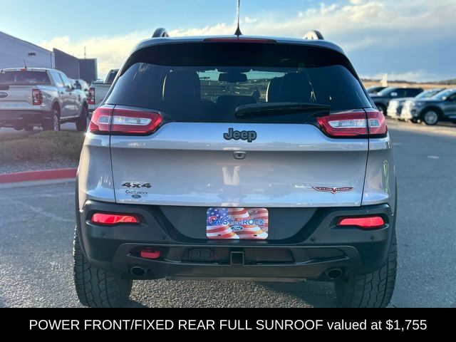 Discover the rugged capability and premium features of this 2018 Jeep Cherokee Trailhawk. Equipped with a powerful 3.2L V6 engine, 9-speed automatic transmission, and 4-wheel drive, this Trailhawk model is ready to tackle any adventure. Explore the great outdoors with confidence, thanks to its off-road-tuned suspension, Jeep Rack Off Road Accessory Kit, and Trailer Tow Group. The Trailhawk's rugged good looks are enhanced by its silver exterior, 17" black painted aluminum wheels, and off-road-focused styling cues. Inside, the premium leather-trimmed interior offers exceptional comfort and style. Whether you're tackling the trails or navigating the city, this 2018 Jeep Cherokee Trailhawk is the perfect companion. Experience the perfect balance of capability, technology, and refinement.